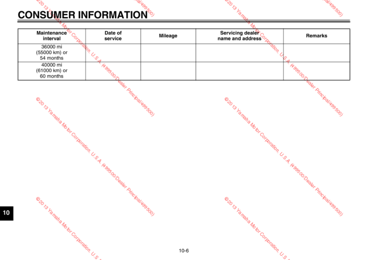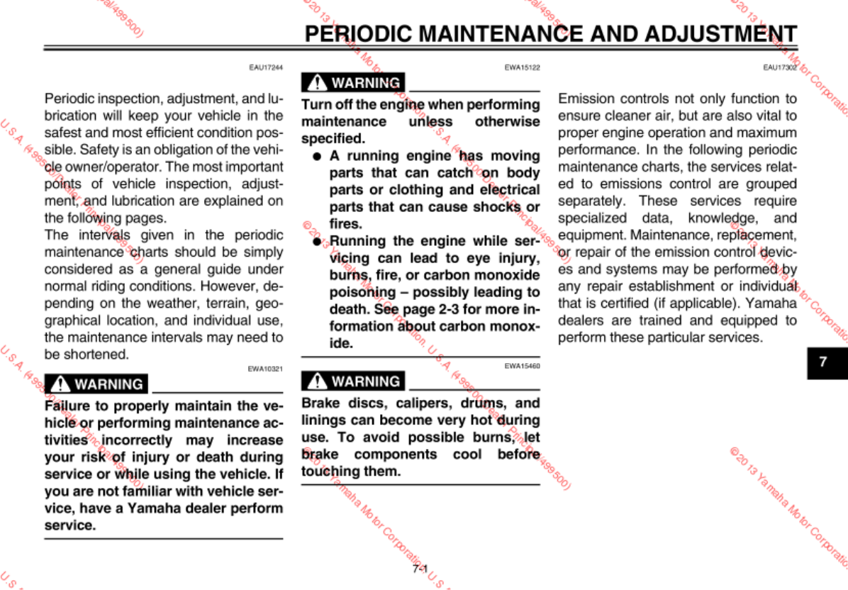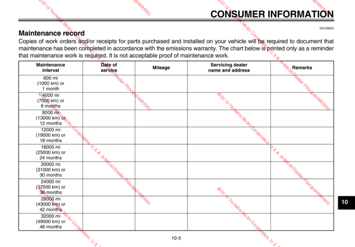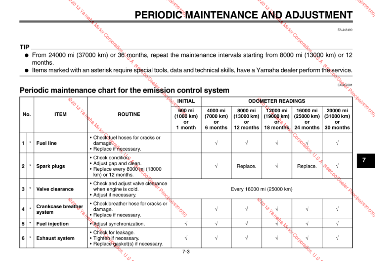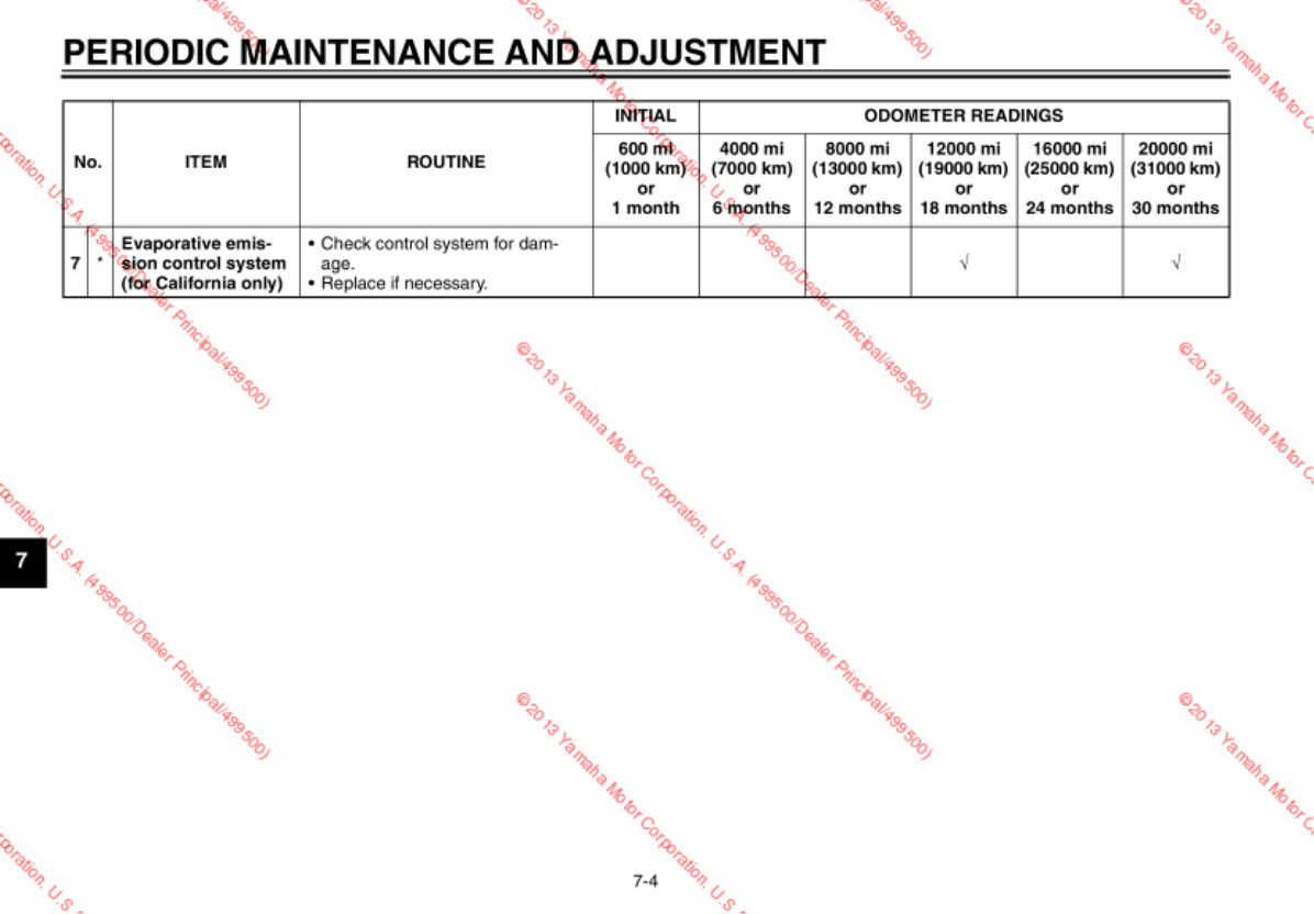 - Periodic maintenance chart for the emission control system