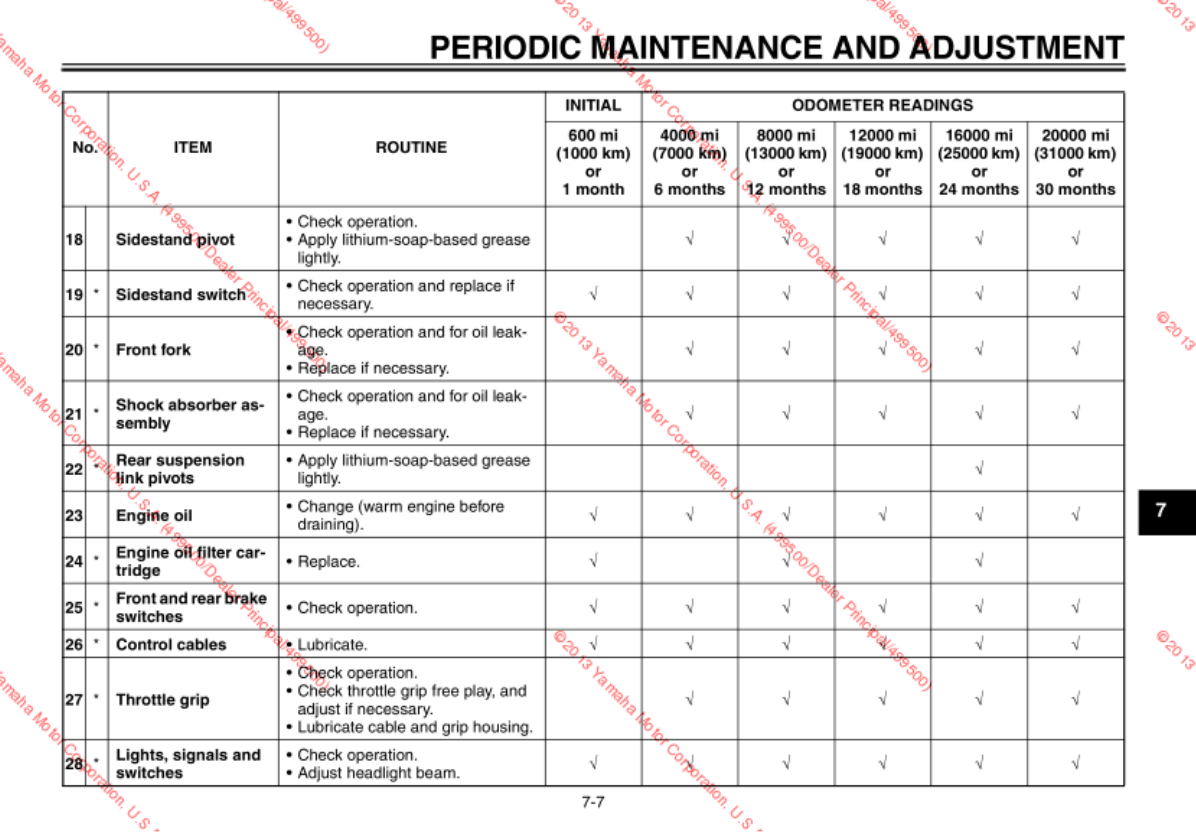 - Checking and lubricating the throttle grip and cable