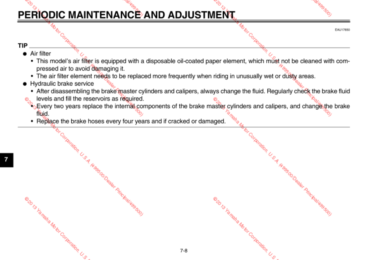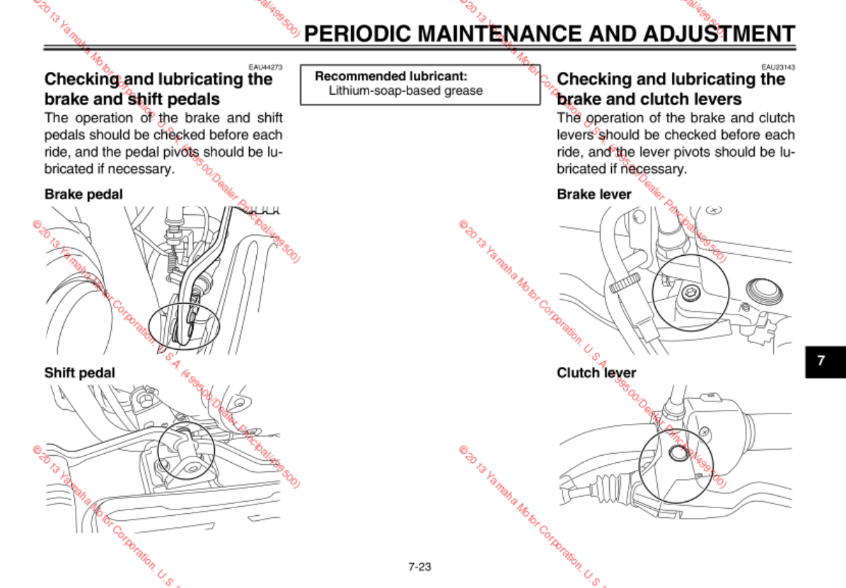 - Checking and lubricating the brake and shift pedals