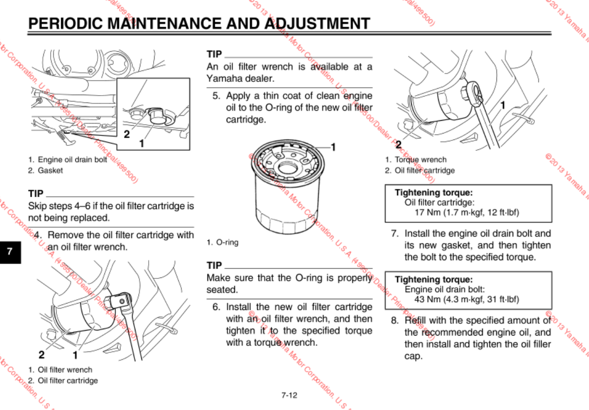 - Engine oil and oil filter cartridge