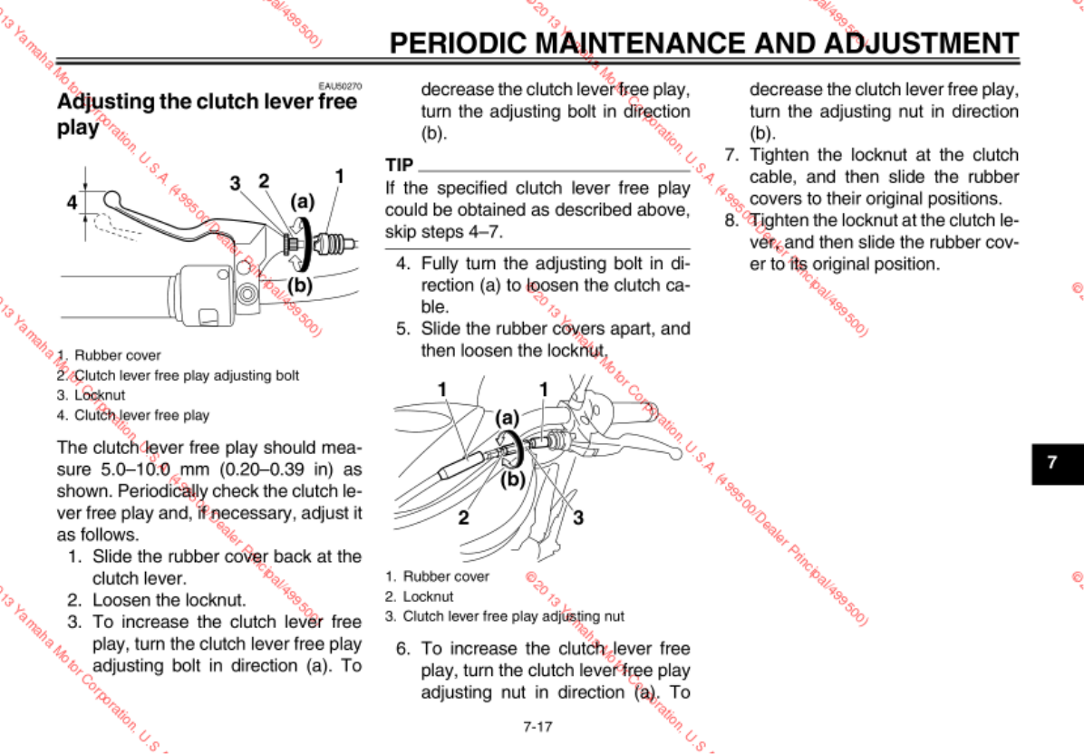 - Adjusting the clutch lever free play