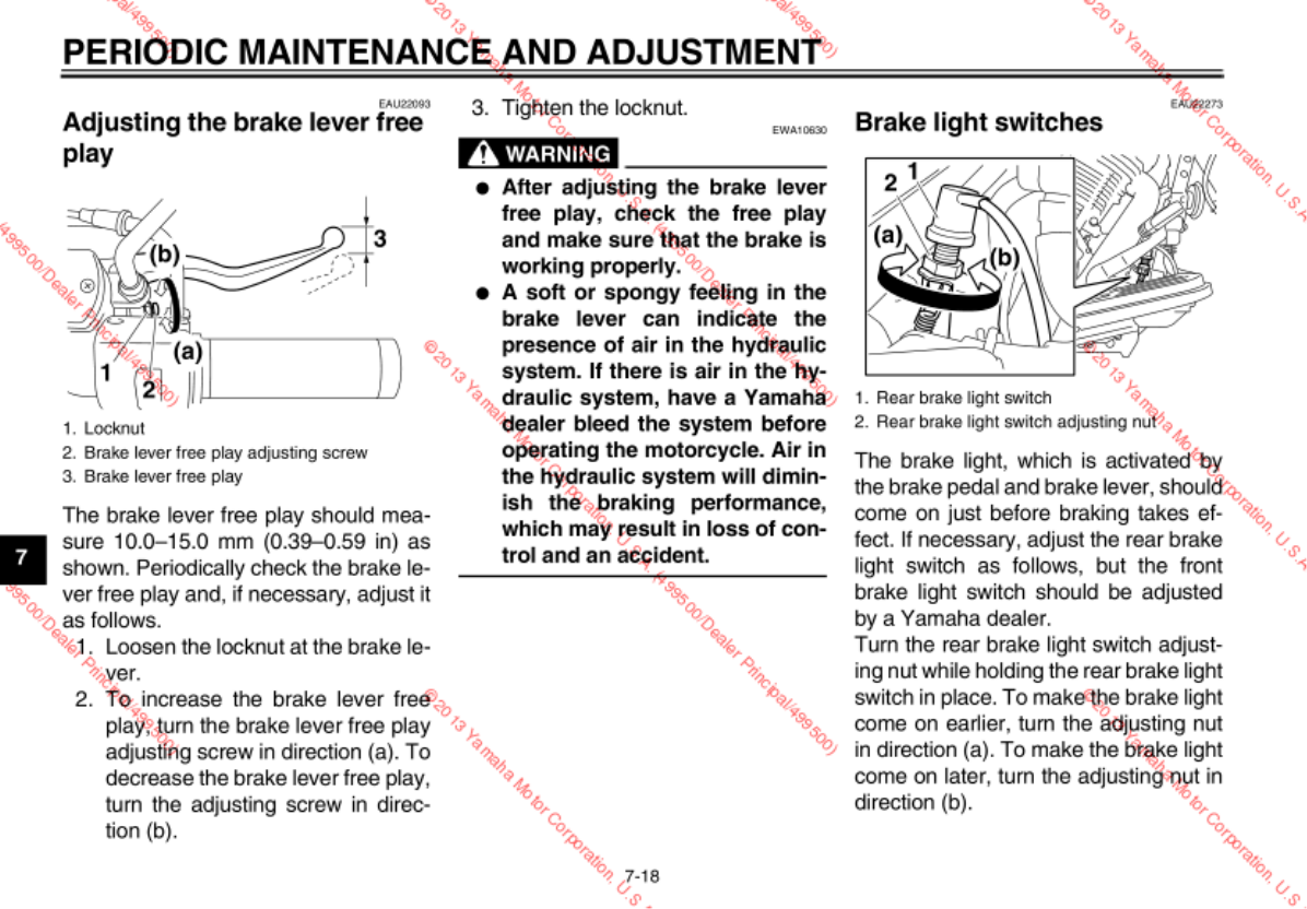 - Adjusting the brake lever free play