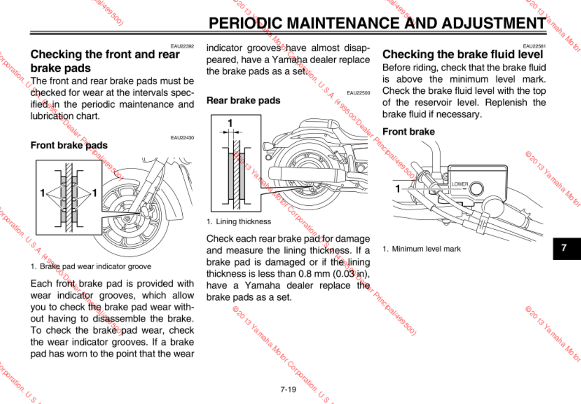 - Checking the front and rear brake pads