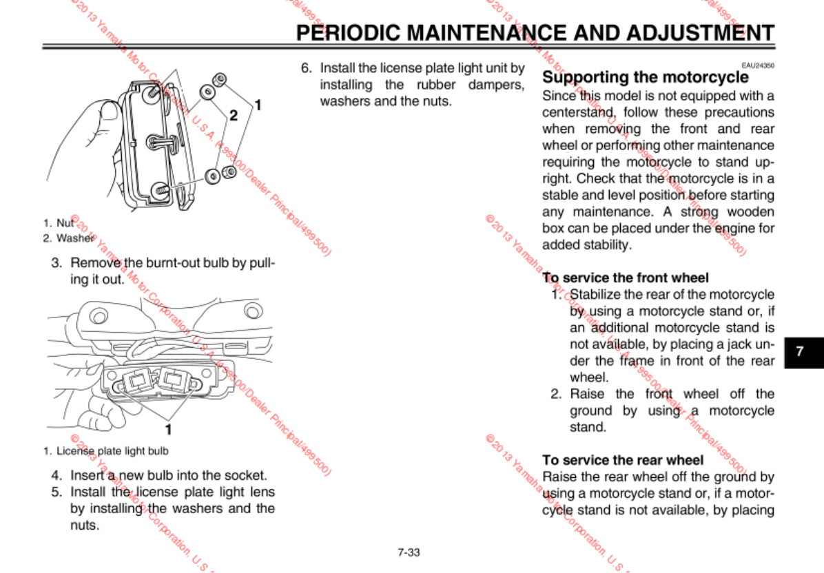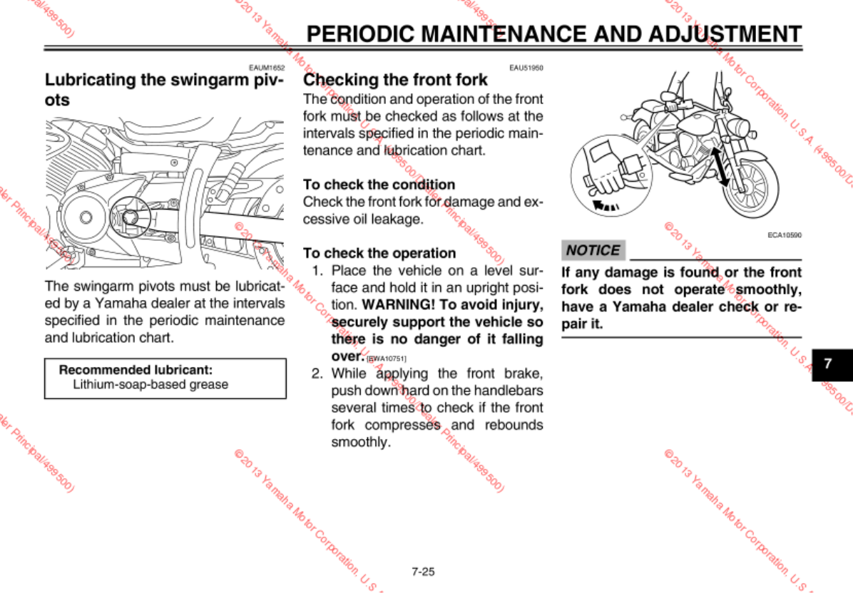 - Checking and lubricating the side stand