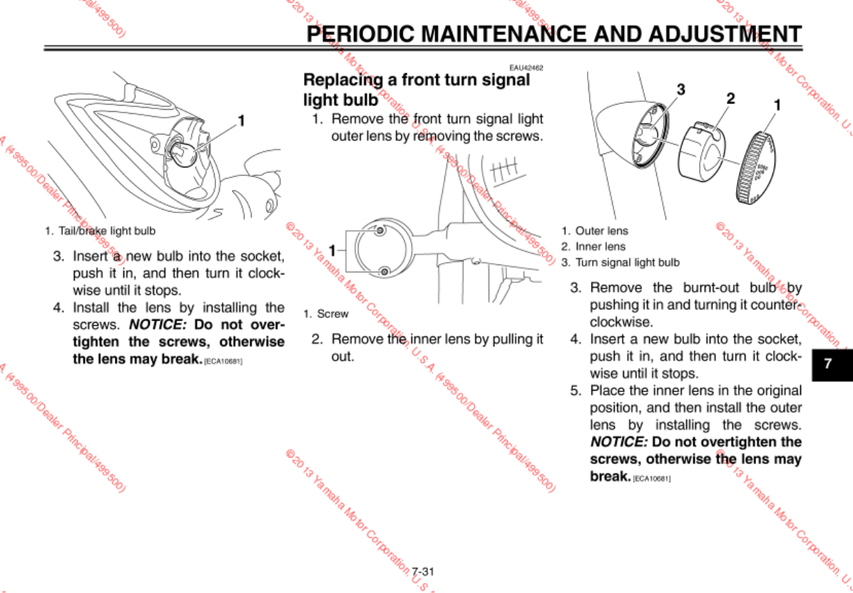 - Replacing a front turn signal light bulb