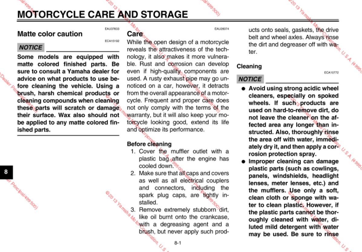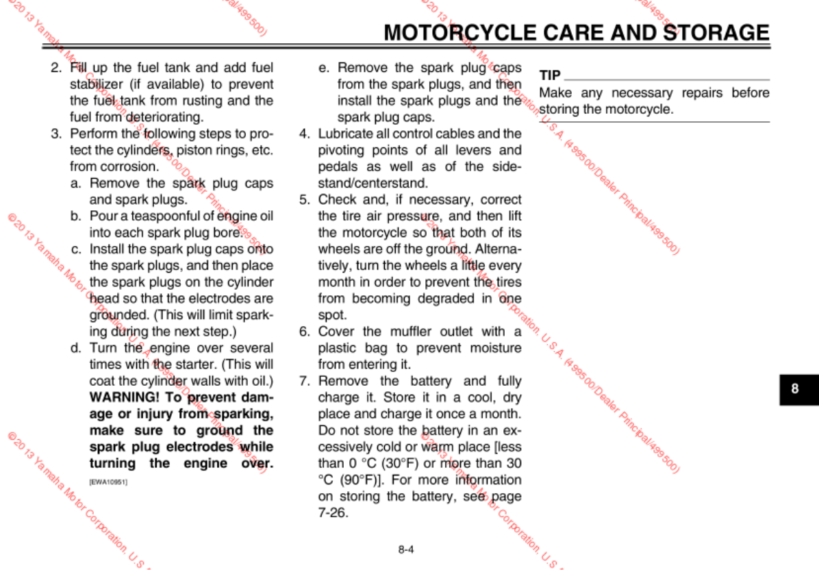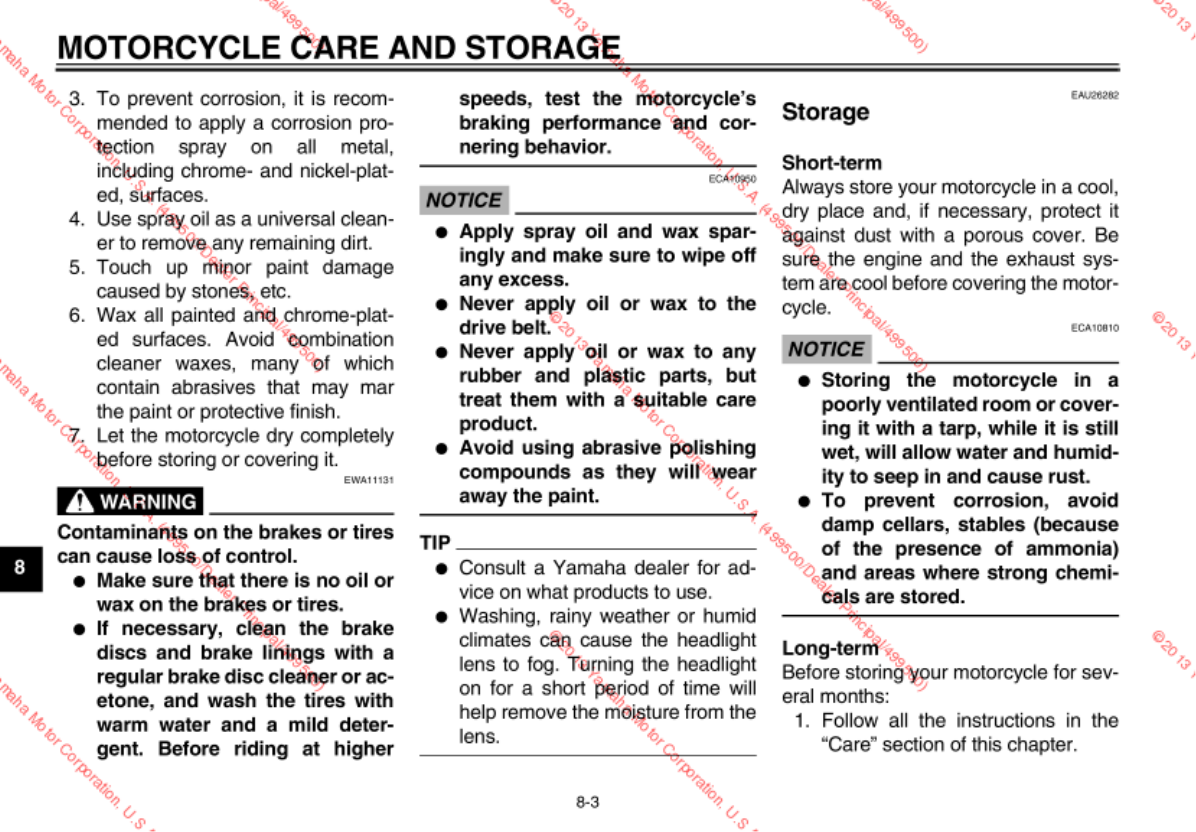 - MOTORCYCLE CARE AND STORAGE