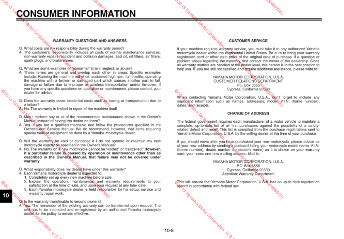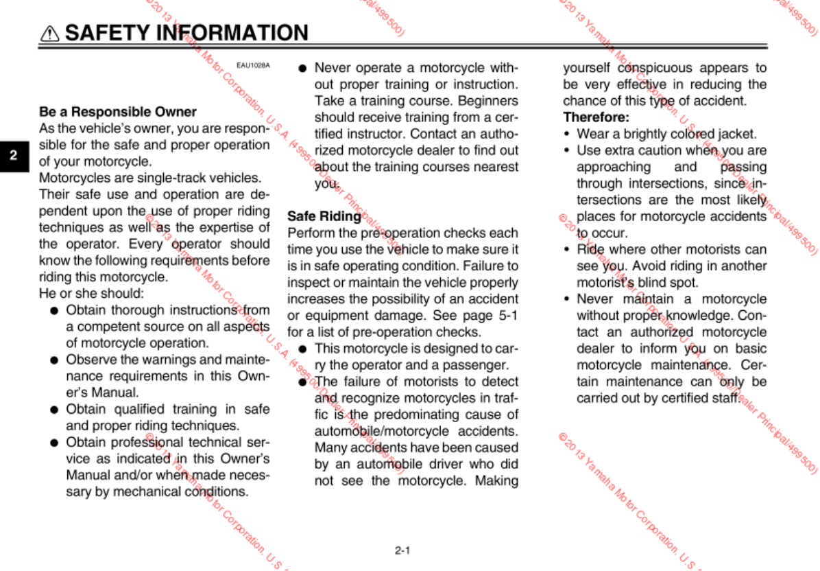 Yamaha 2014 V Star 950 Owners Manual