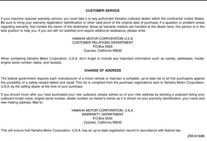 OUTBOARD MOTOR WARRANTY REGISTRATION