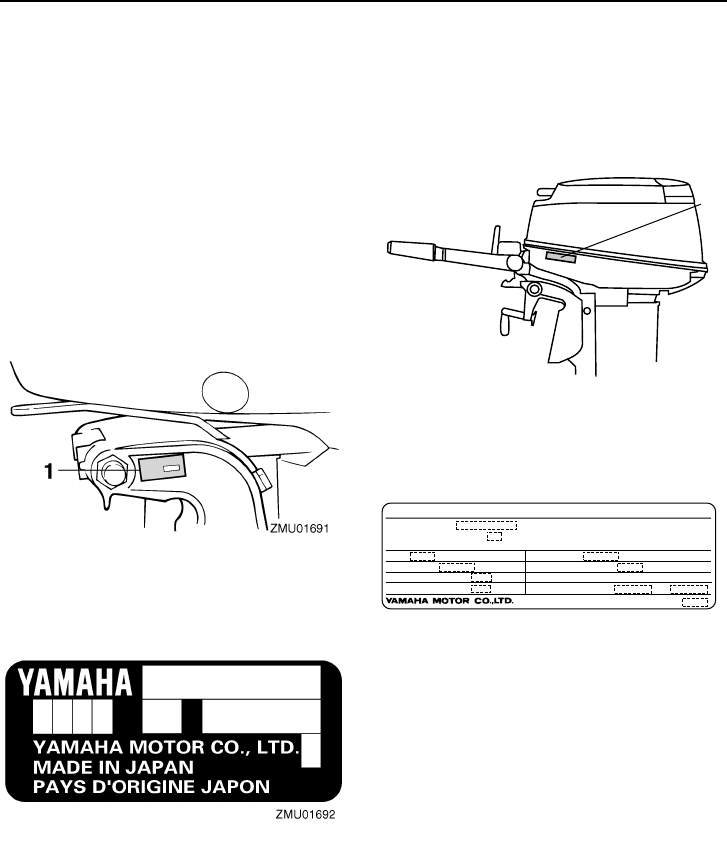 OUTBOARD MOTOR MODEL AND SERIAL NUMBER (From I.D. label on clamp bracket)