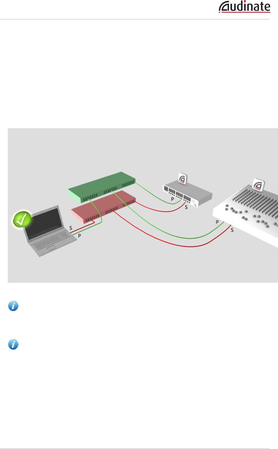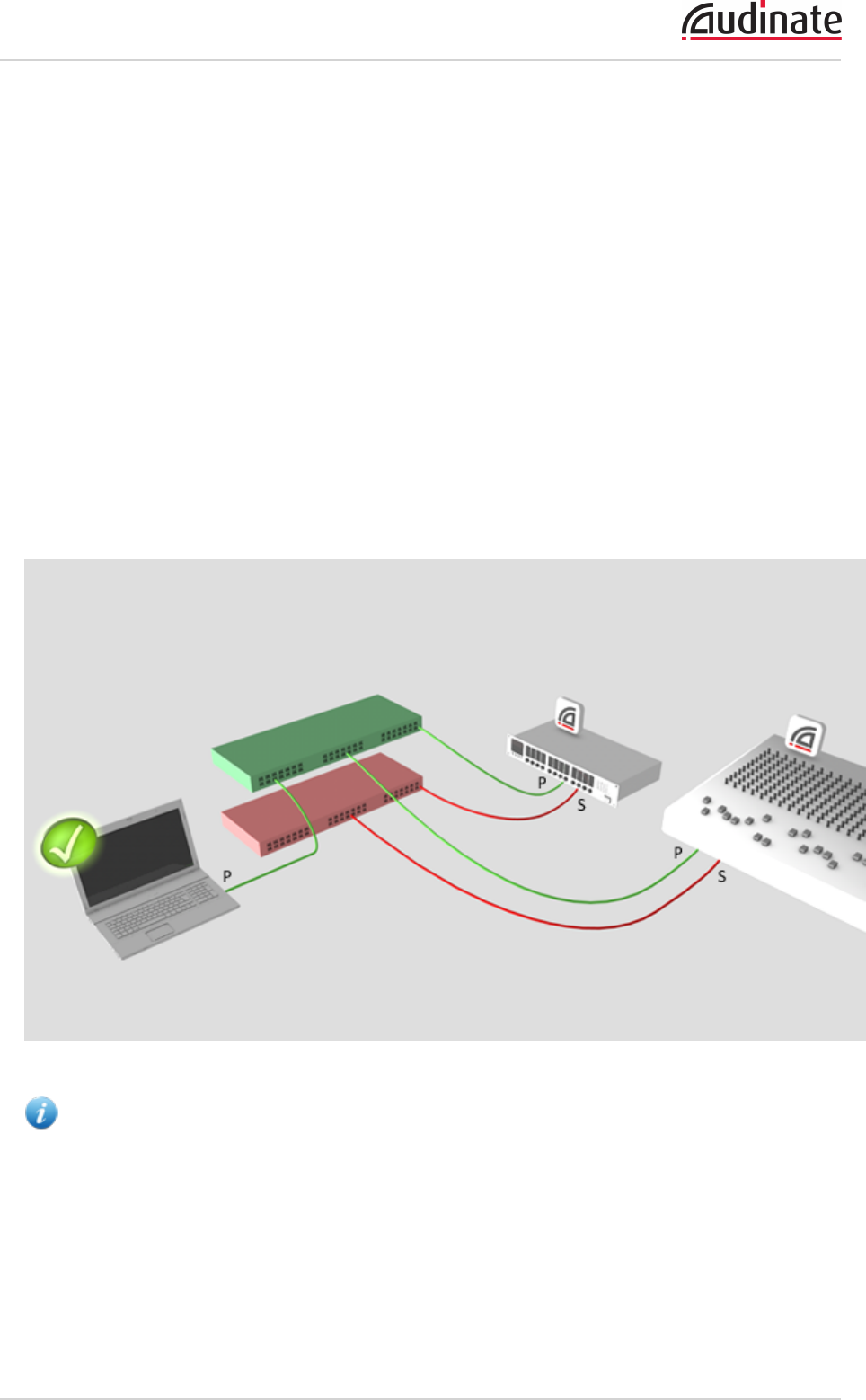 Primary and secondary Dante networks (redundant configuration), only one network