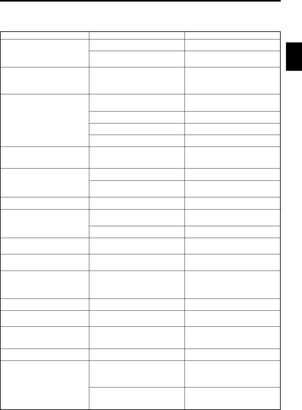 Se reporter au tableau ci-dessous lorsque l’appareil ne fonctionne pas correctement. Si le problème rencontré n’est pas décrit