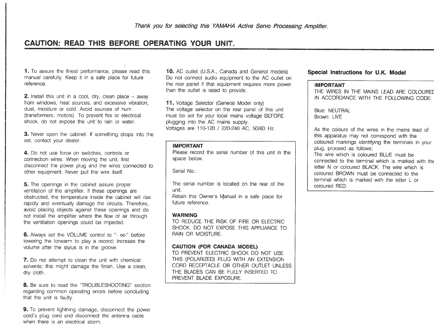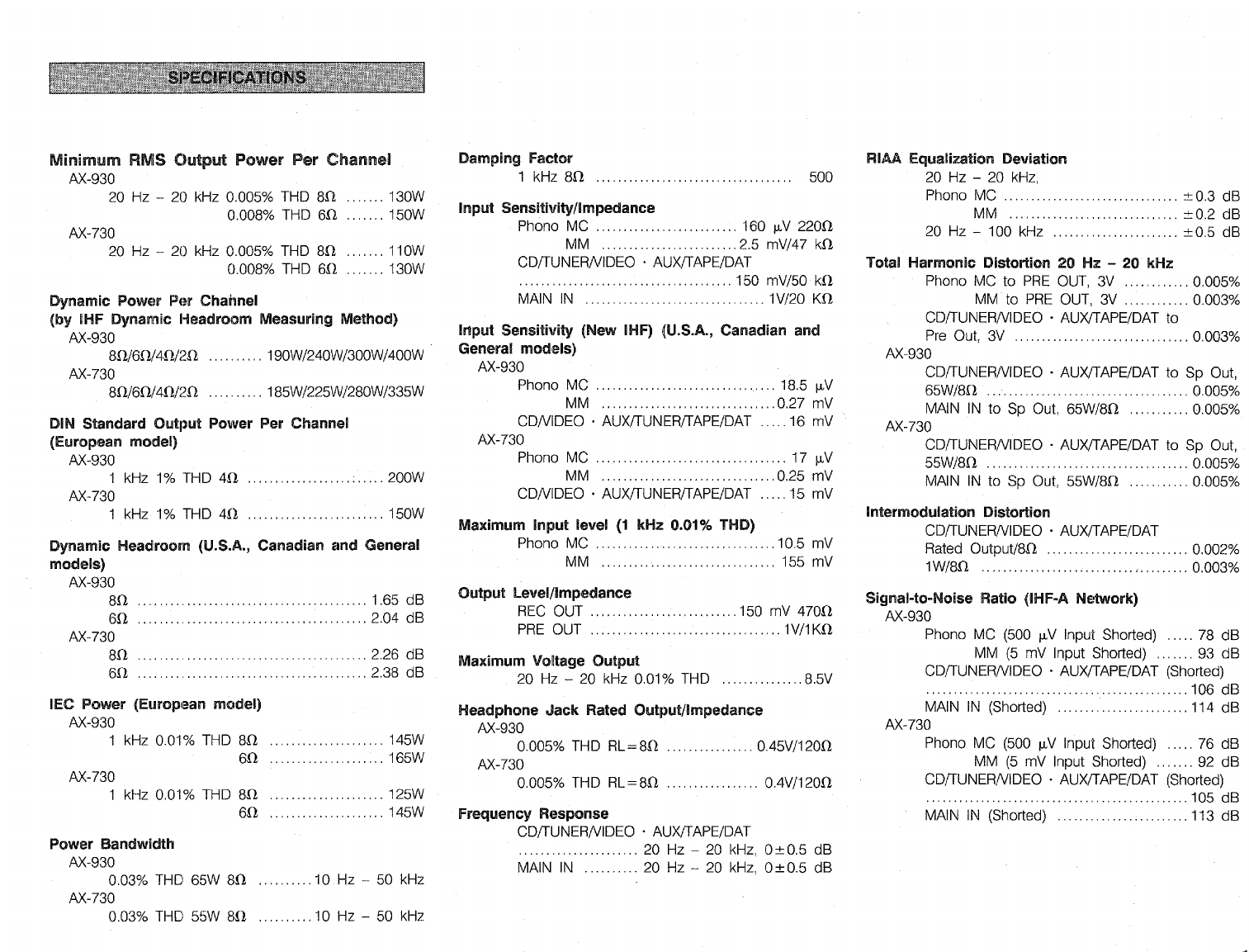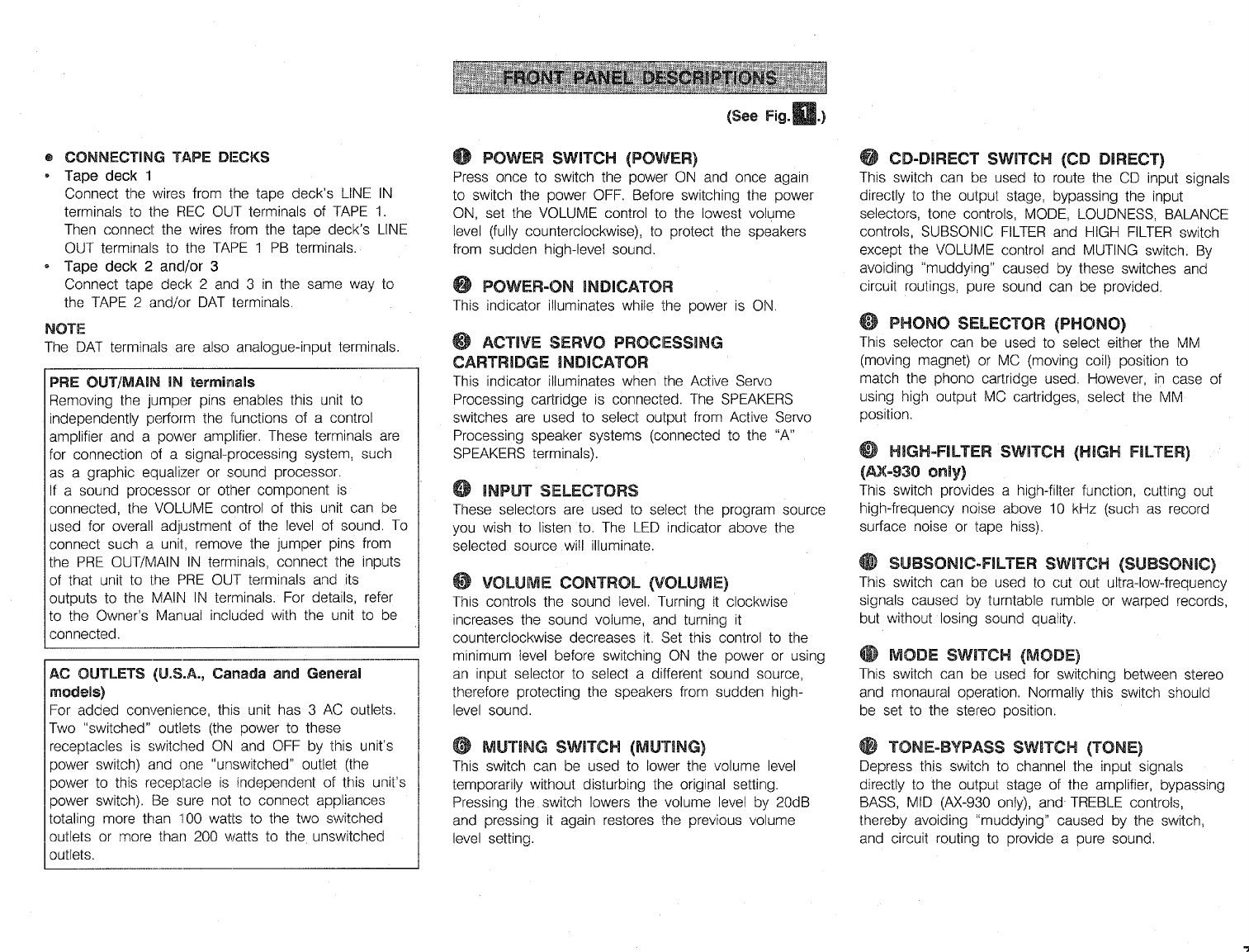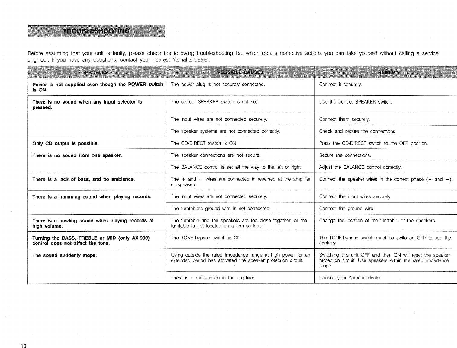 User Manual: Yamaha AX-930 OWNER'S MANUAL