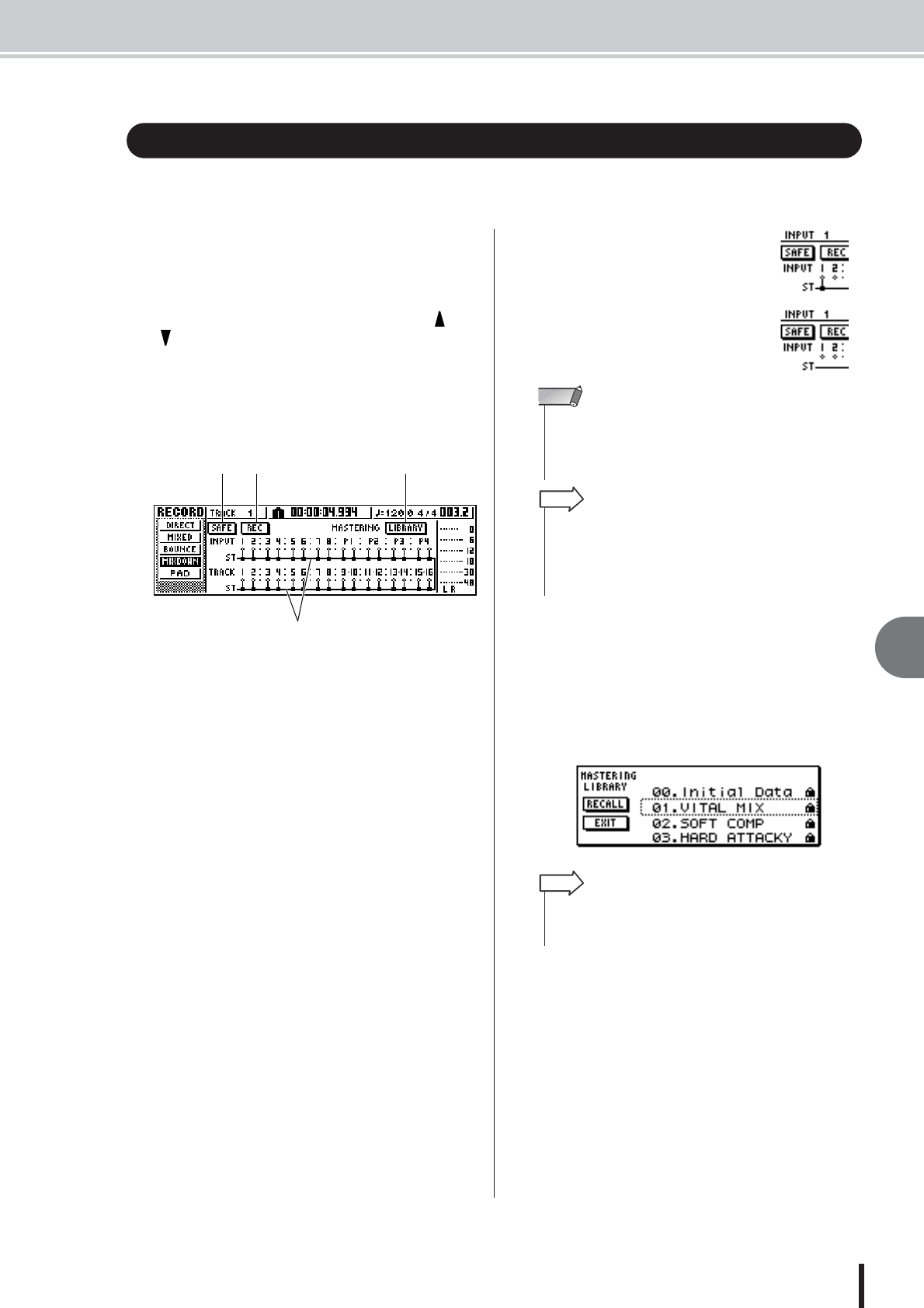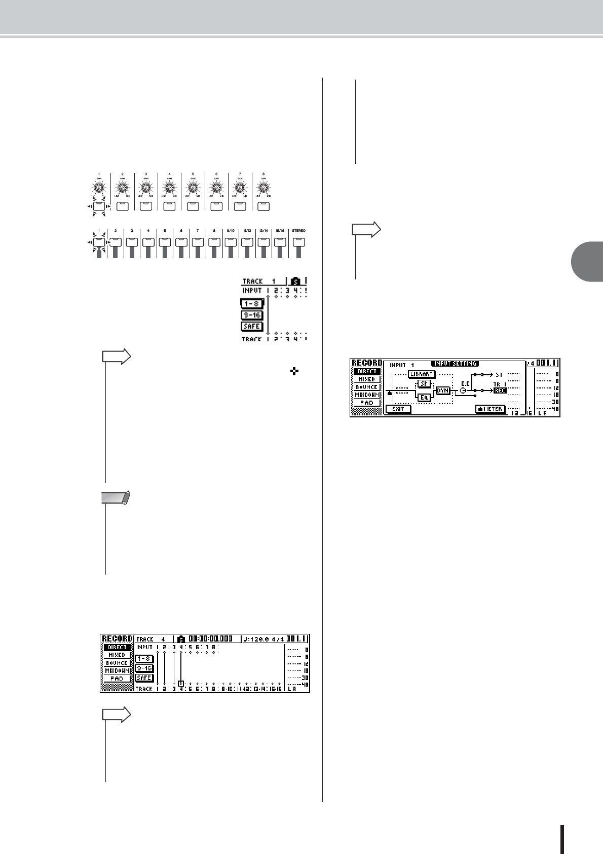 - Assigning input signals to tracks (Direct recording)