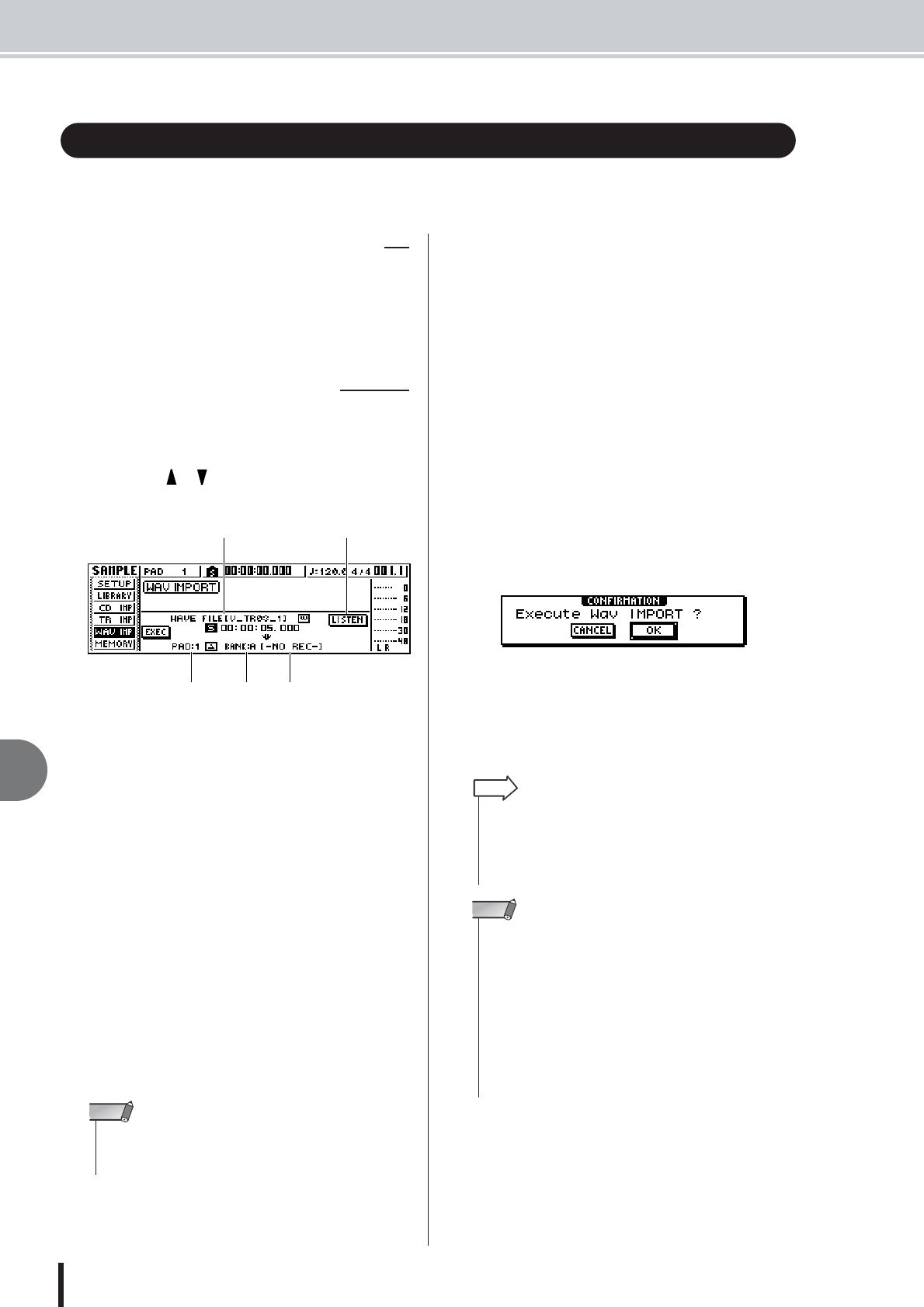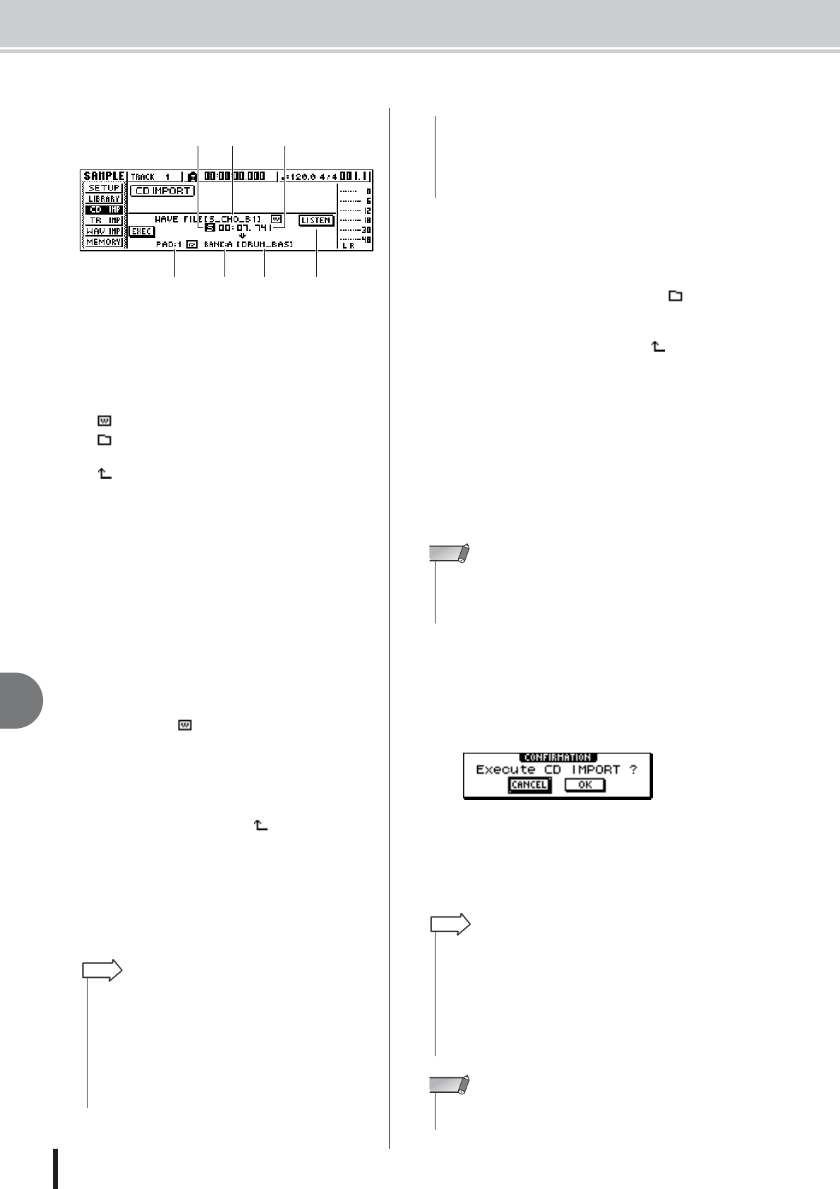 - Importing from an audio CD/WAV file to a pad