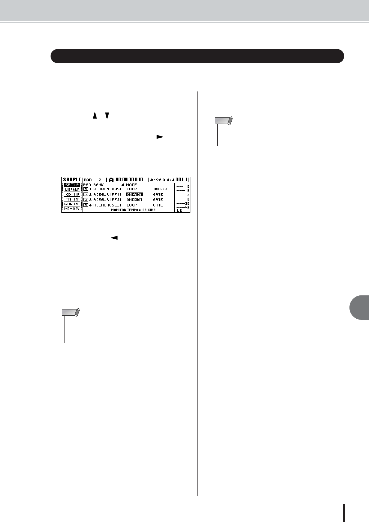 - Switching the playback mode for each pad