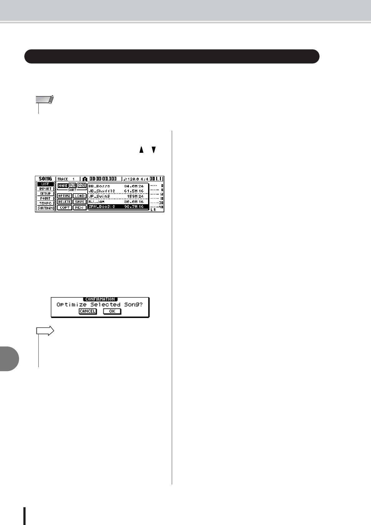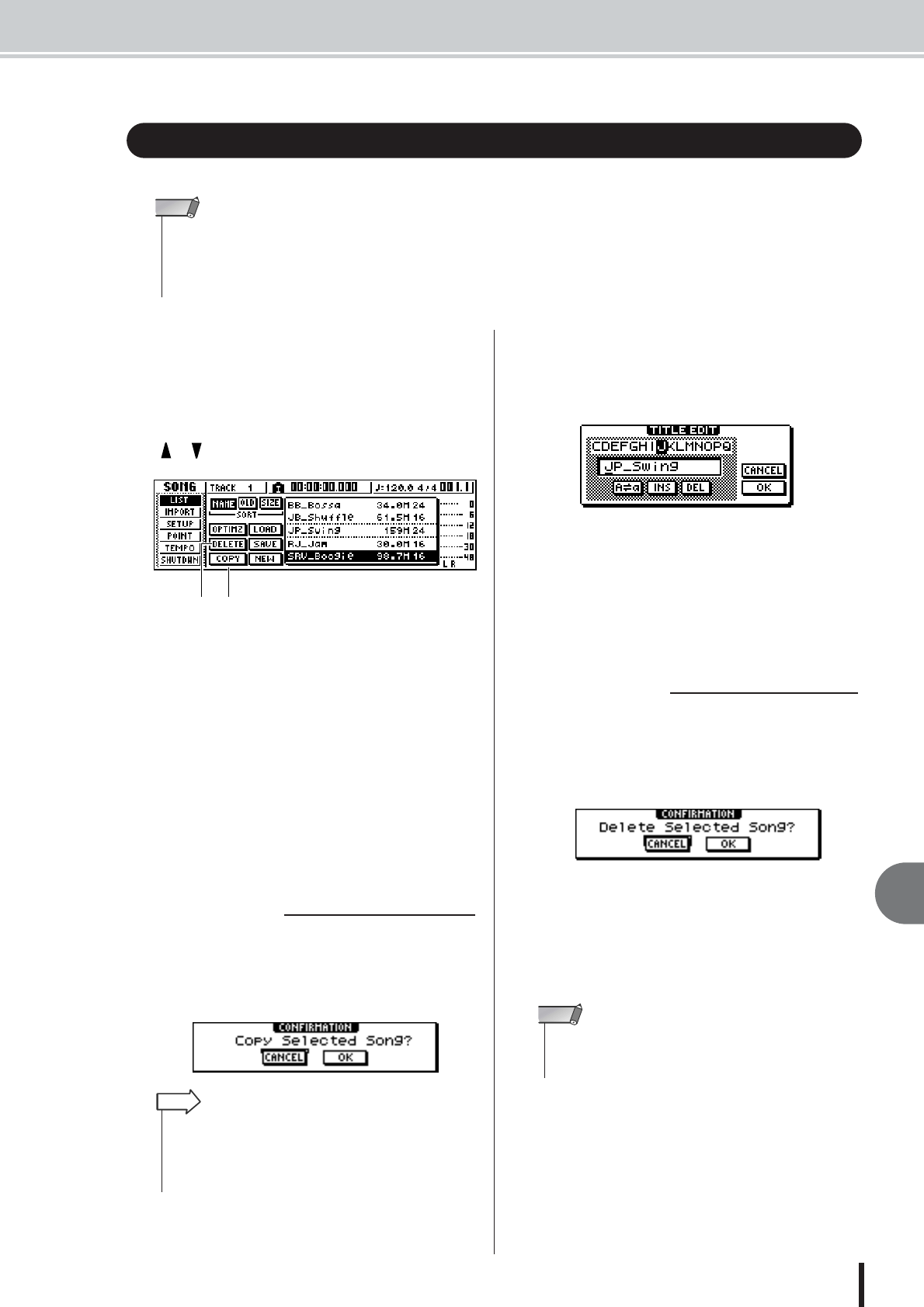 - Copying or deleting a song