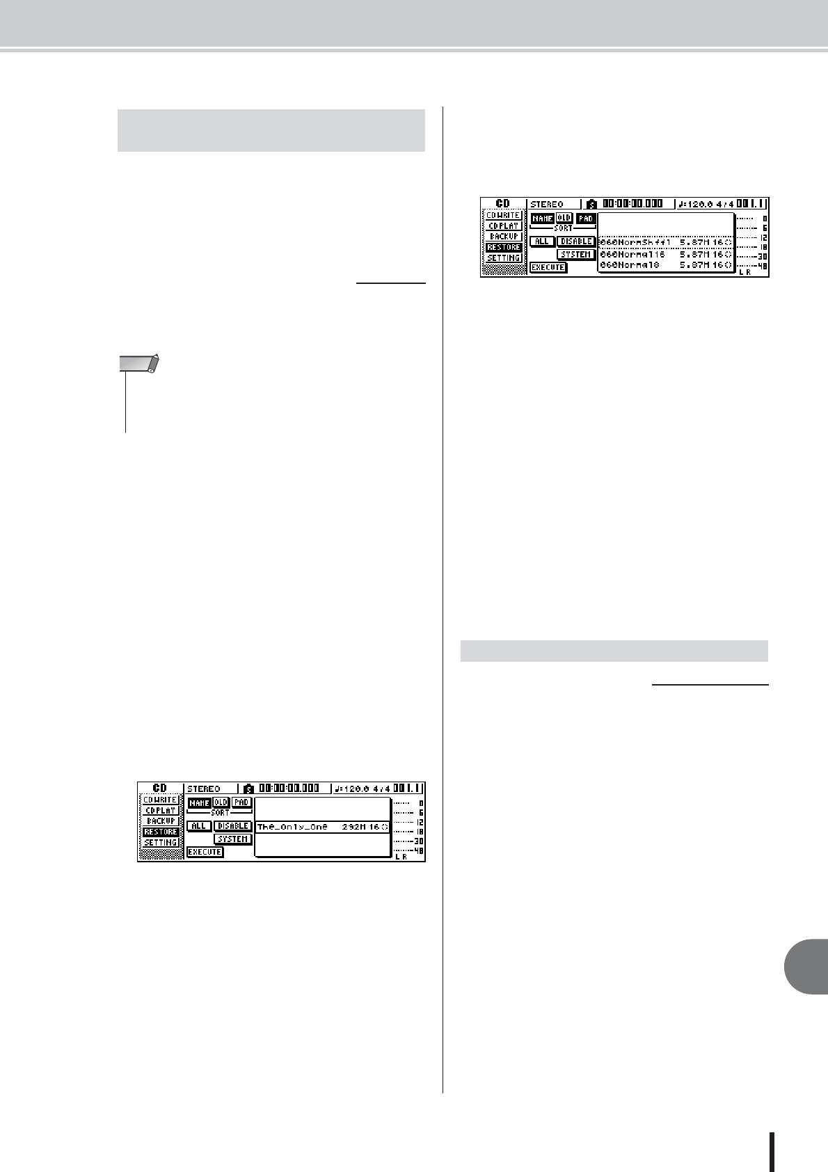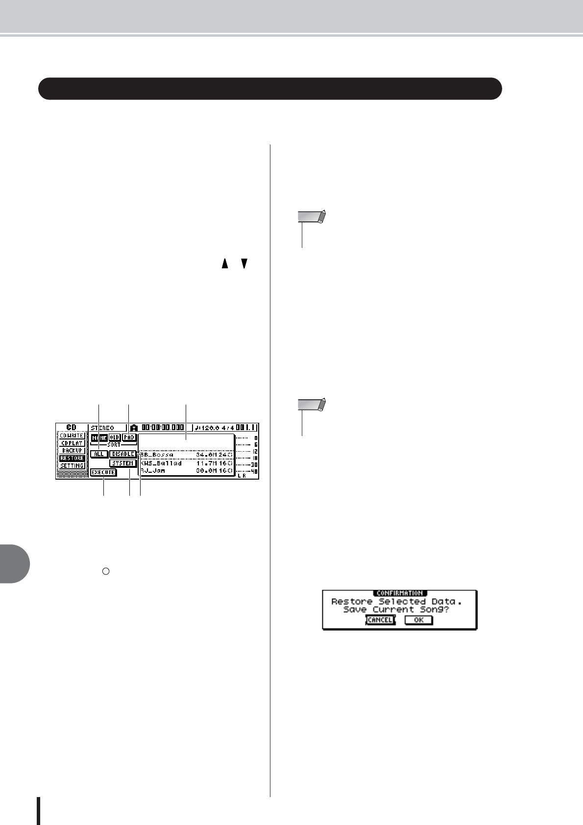 - Restoring songs or sample libraries