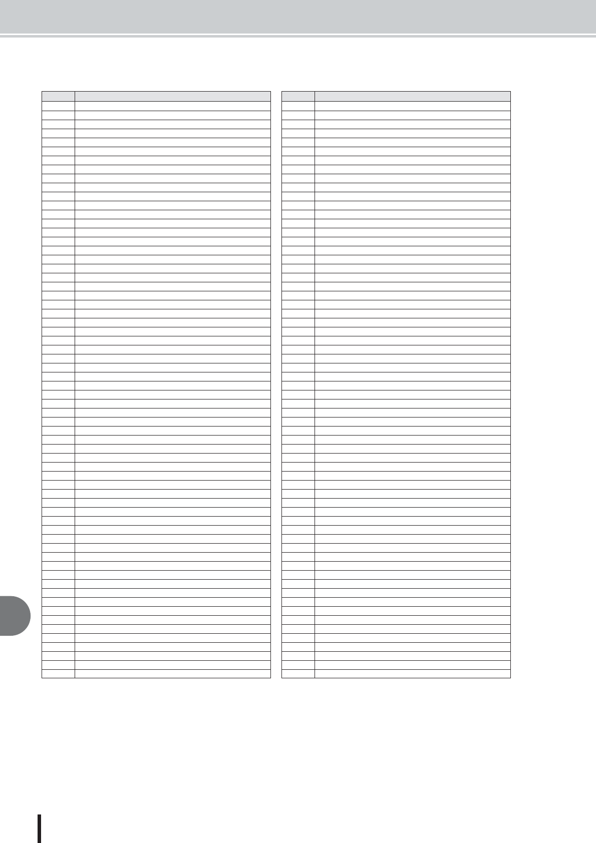 - MIDI Implementation Chart