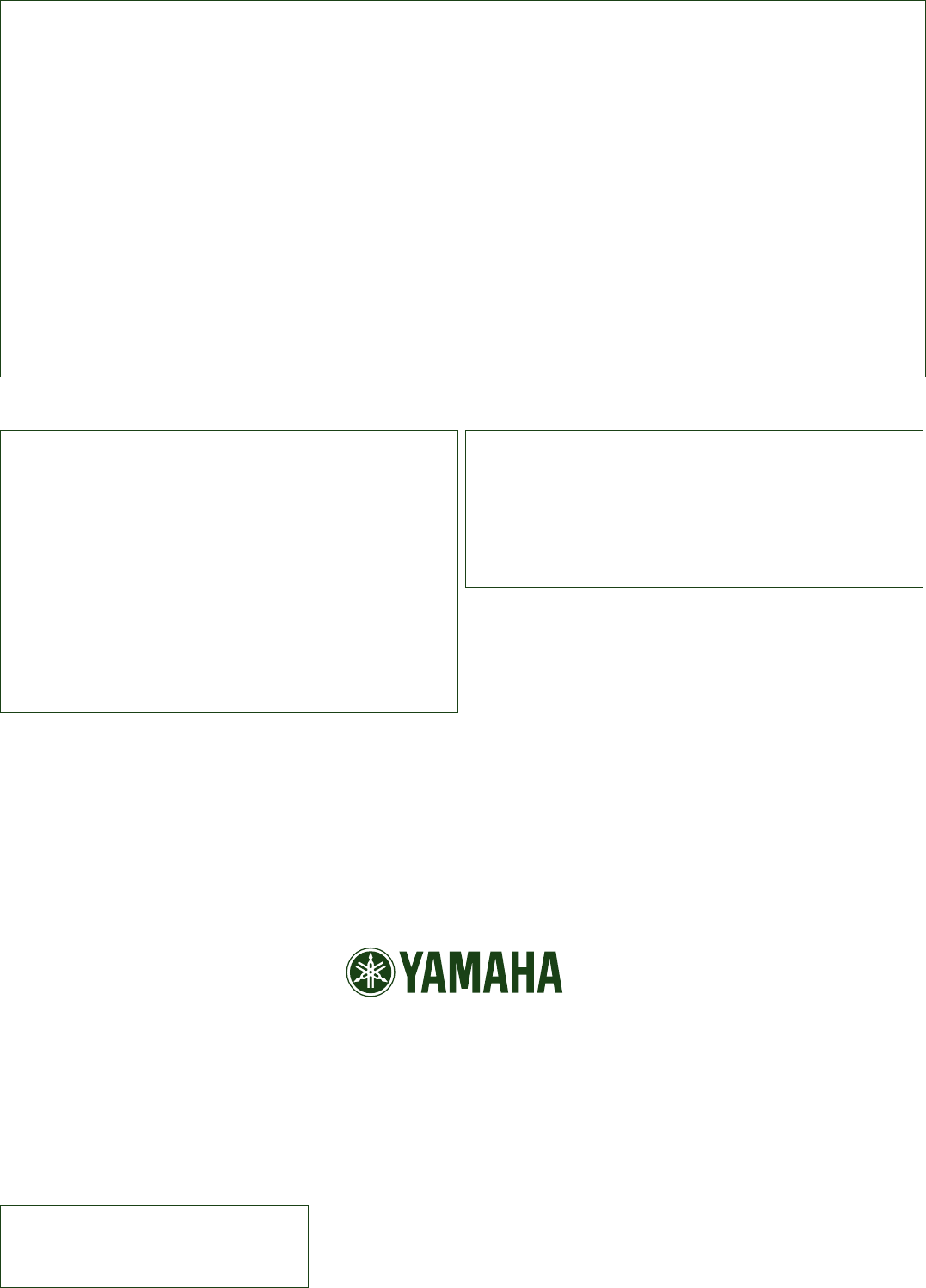 contact Yamaha Corporation of America, Electronic Service Divi-