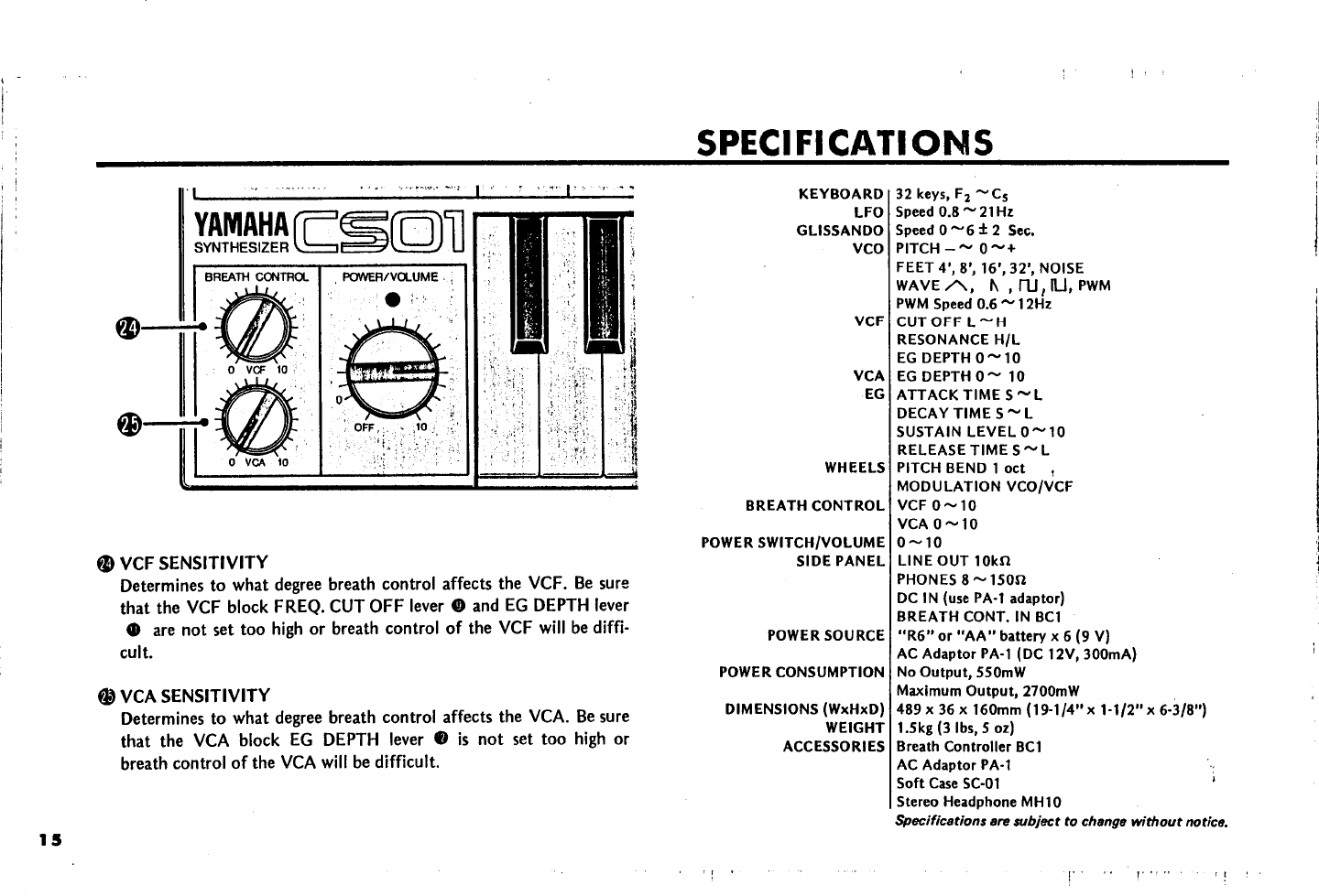 User Manual: Yamaha CS01 Owner's Manual