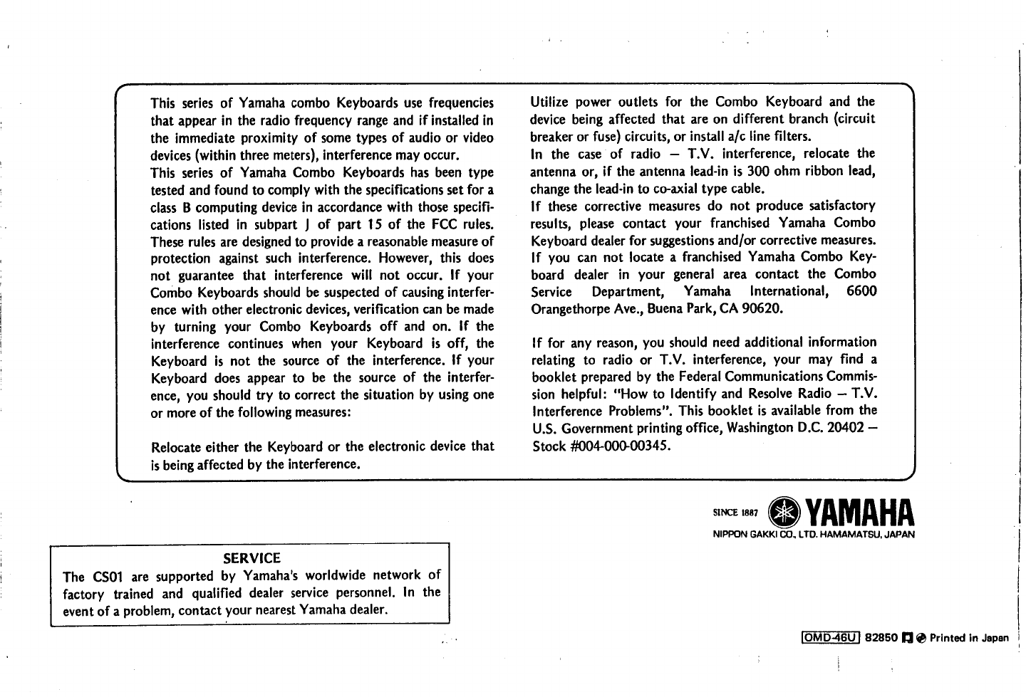 Yamaha CS-01 Owners Manual Yamaha CS-01 Owners Manual Synthfool:Docs:Yamaha: