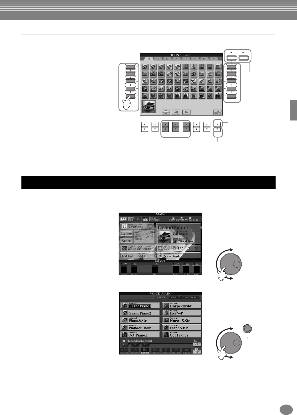 - Réglage approprié du panneau pour le style sélectionné (ONE TOUCH SETTING) (présélection immédiate)