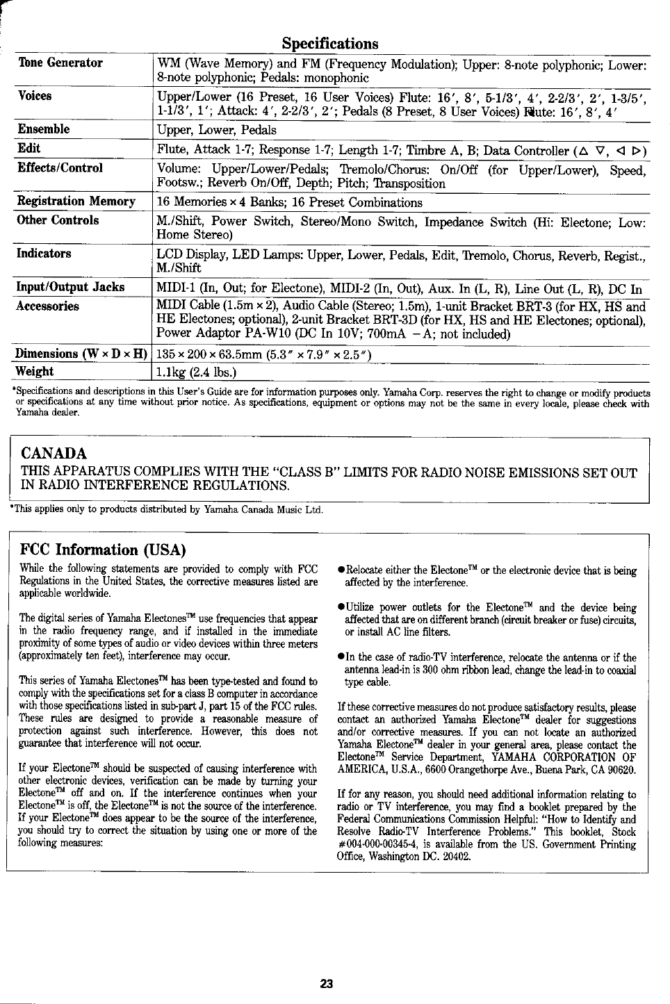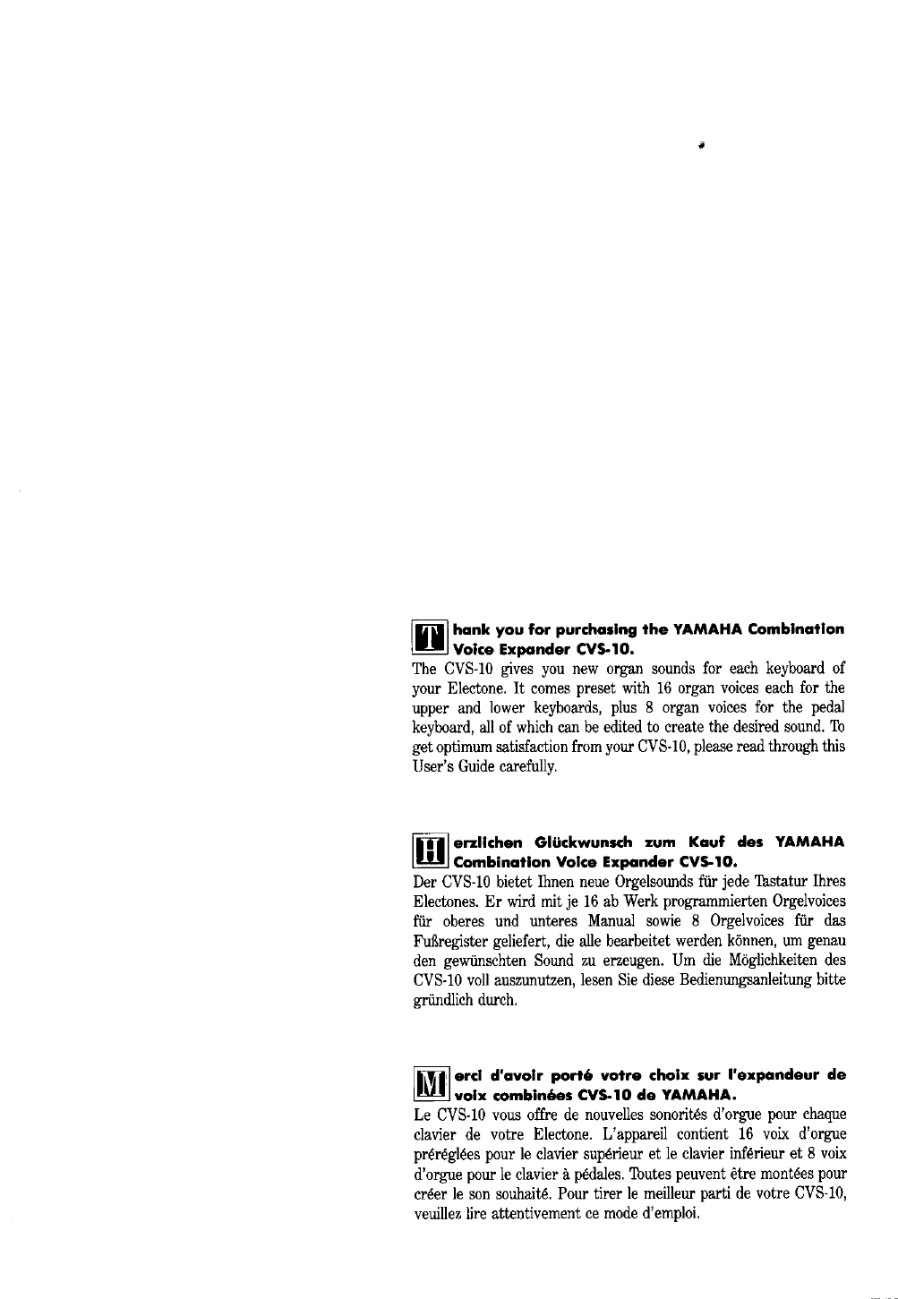 Yamaha CVS 10 Owner's Manual (Image) CVS10E