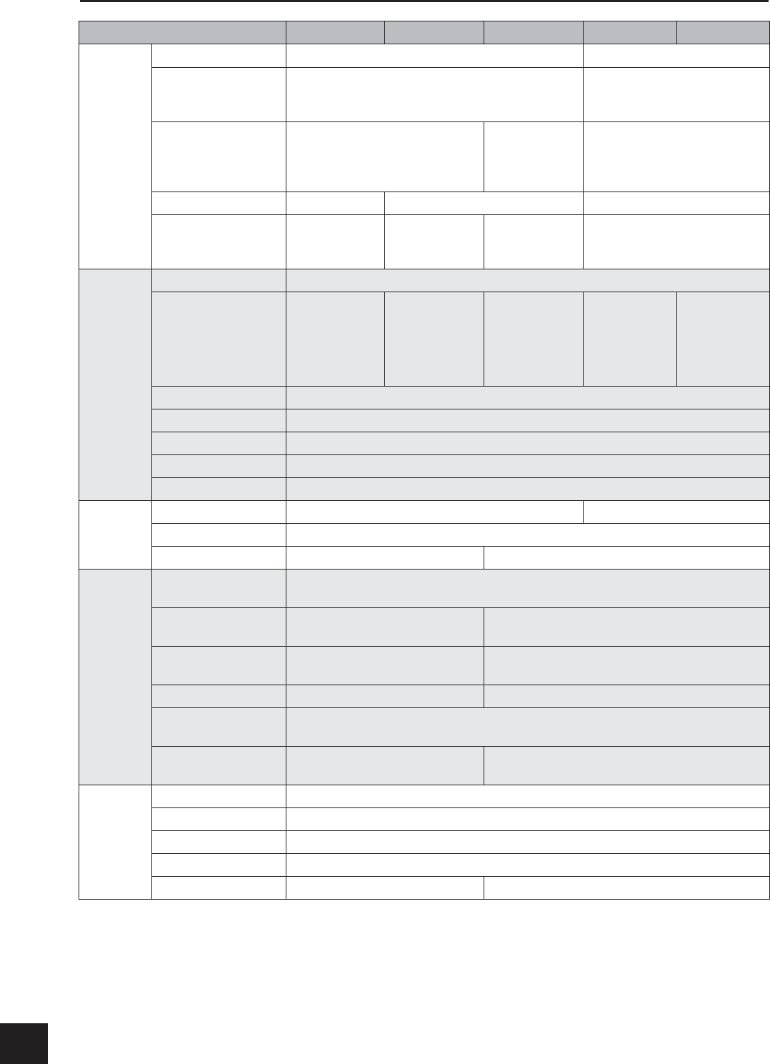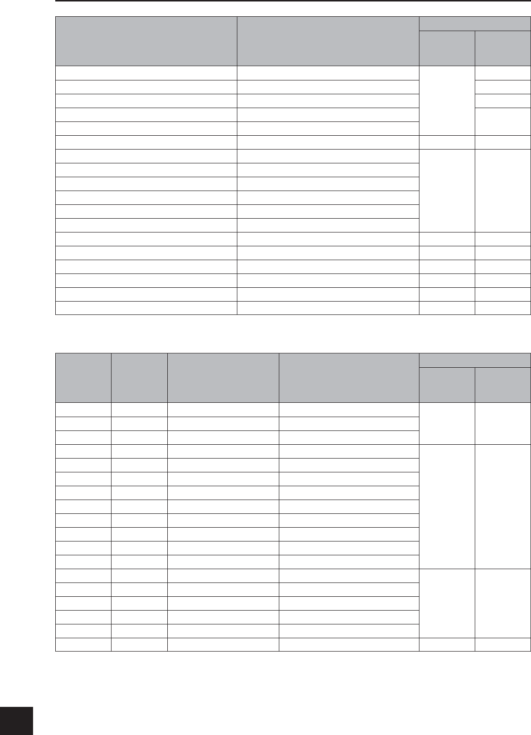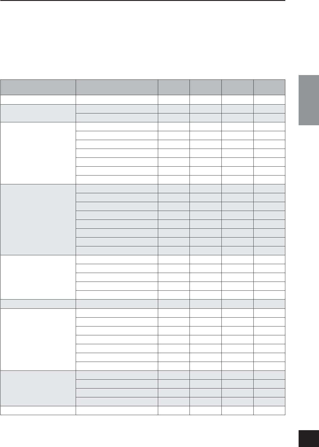 - Factory Setting List / Liste der Vorgabeeinstellungen / Liste des réglages / Lista de ajustes de fábrica