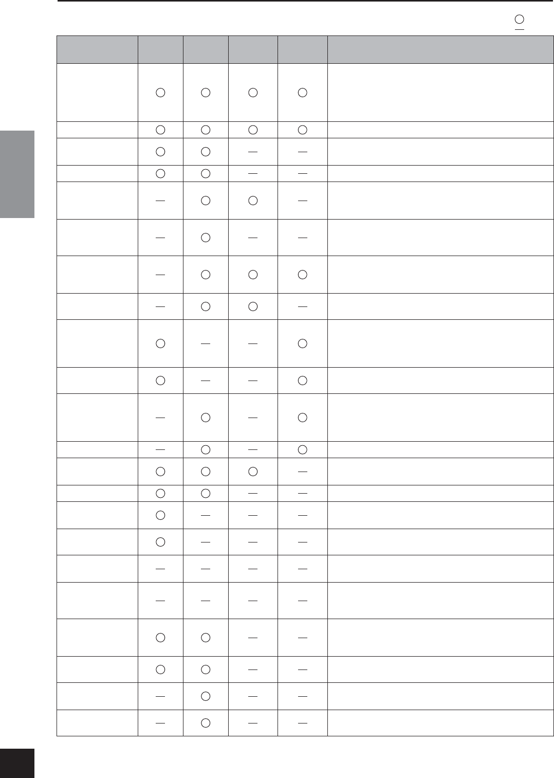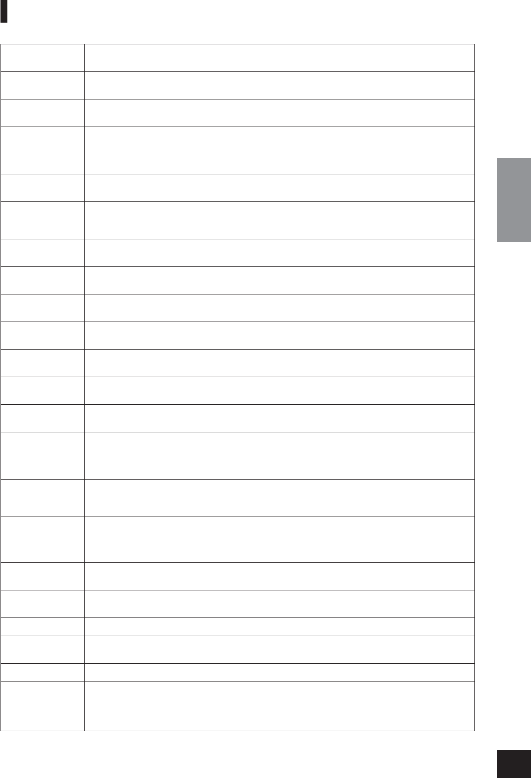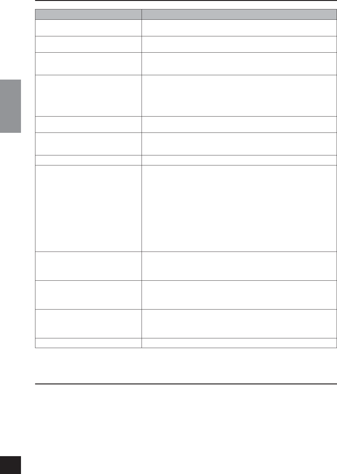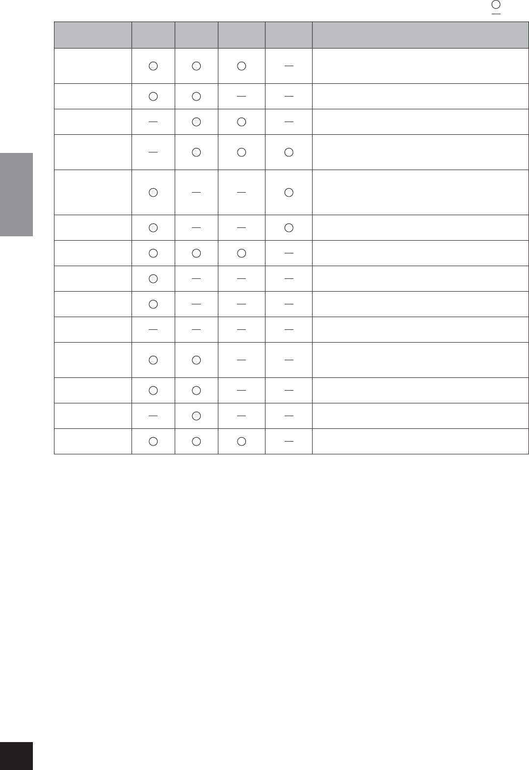 - Factory Setting List / Liste der Vorgabeeinstellungen / Liste des réglages / Lista de ajustes de fábrica
