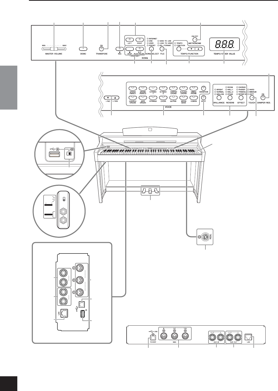 - Adding Variations to the Sound - [VARIATION] (CLP-370/340)/[BRILLIANCE]/[REVERB]/[EFFECT]/ [DAMPER RES.]