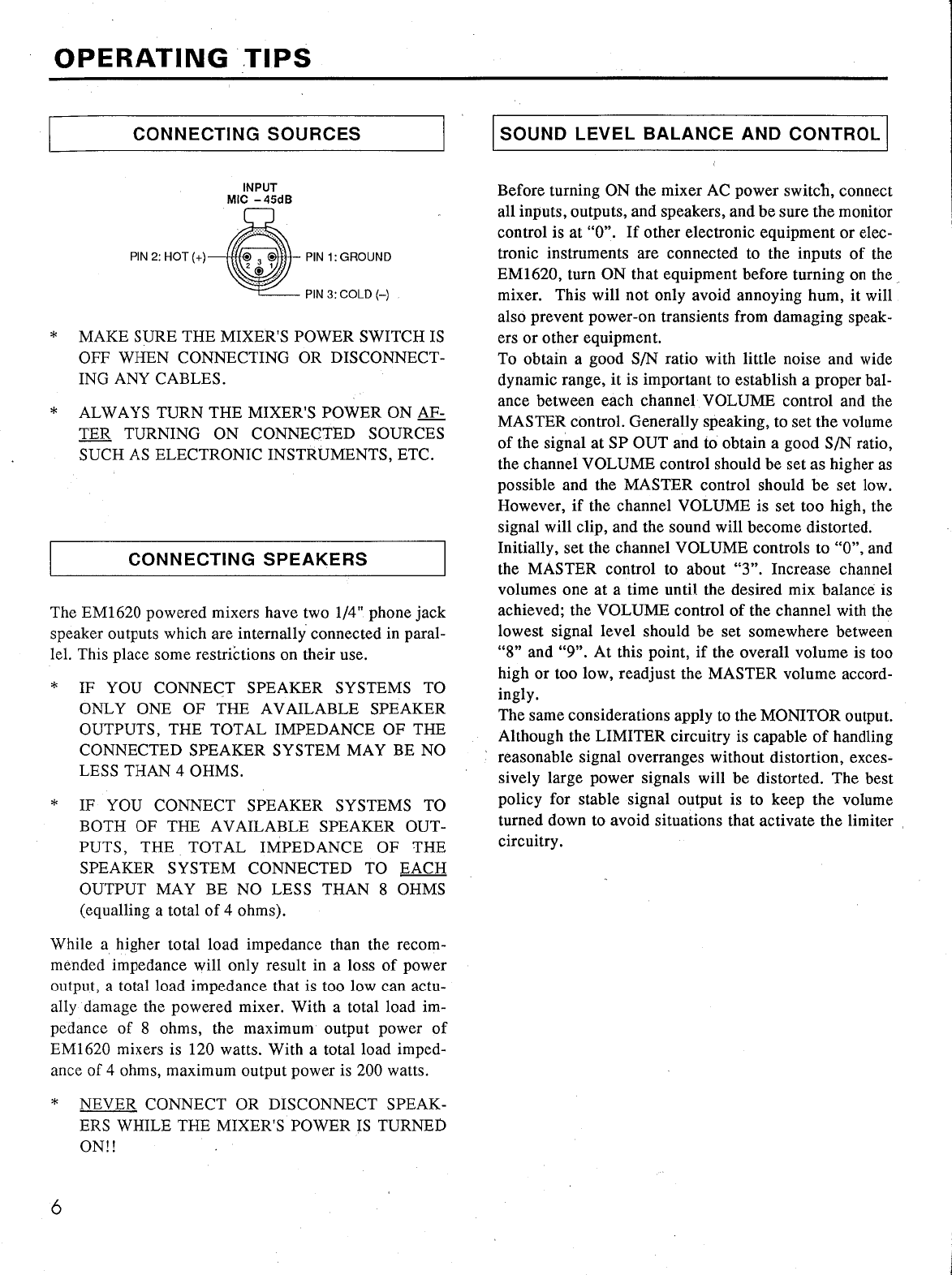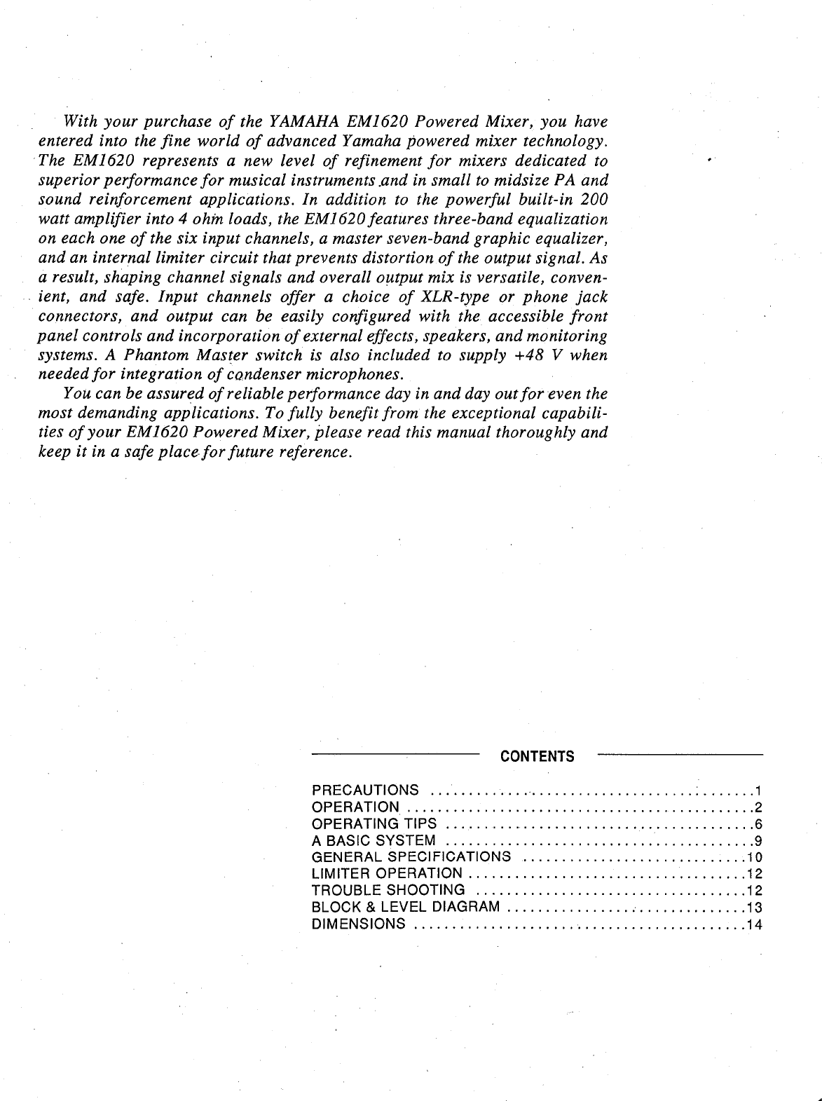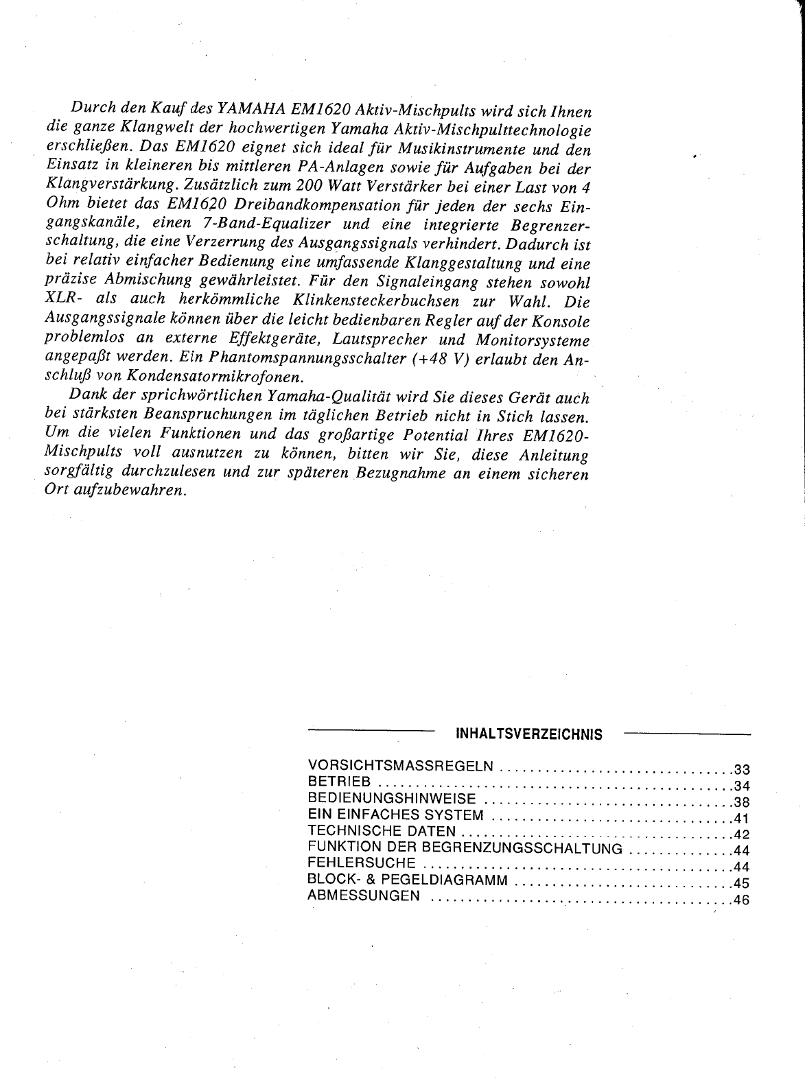 Yamaha Em1620 Operation Manual