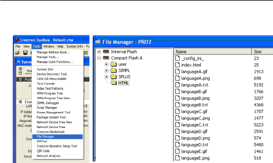 Language and image files. Transfer using File Manager in the Toolbox application to the