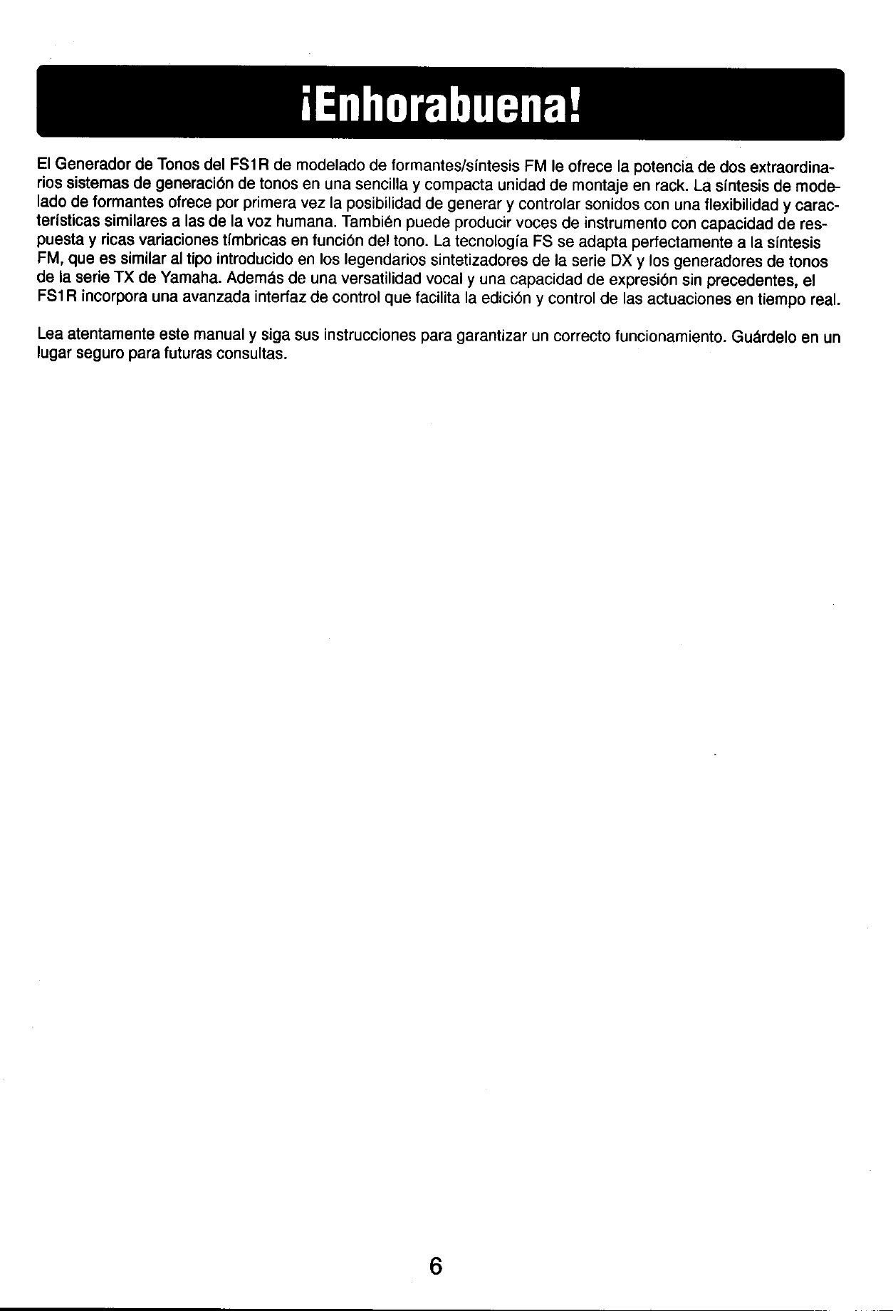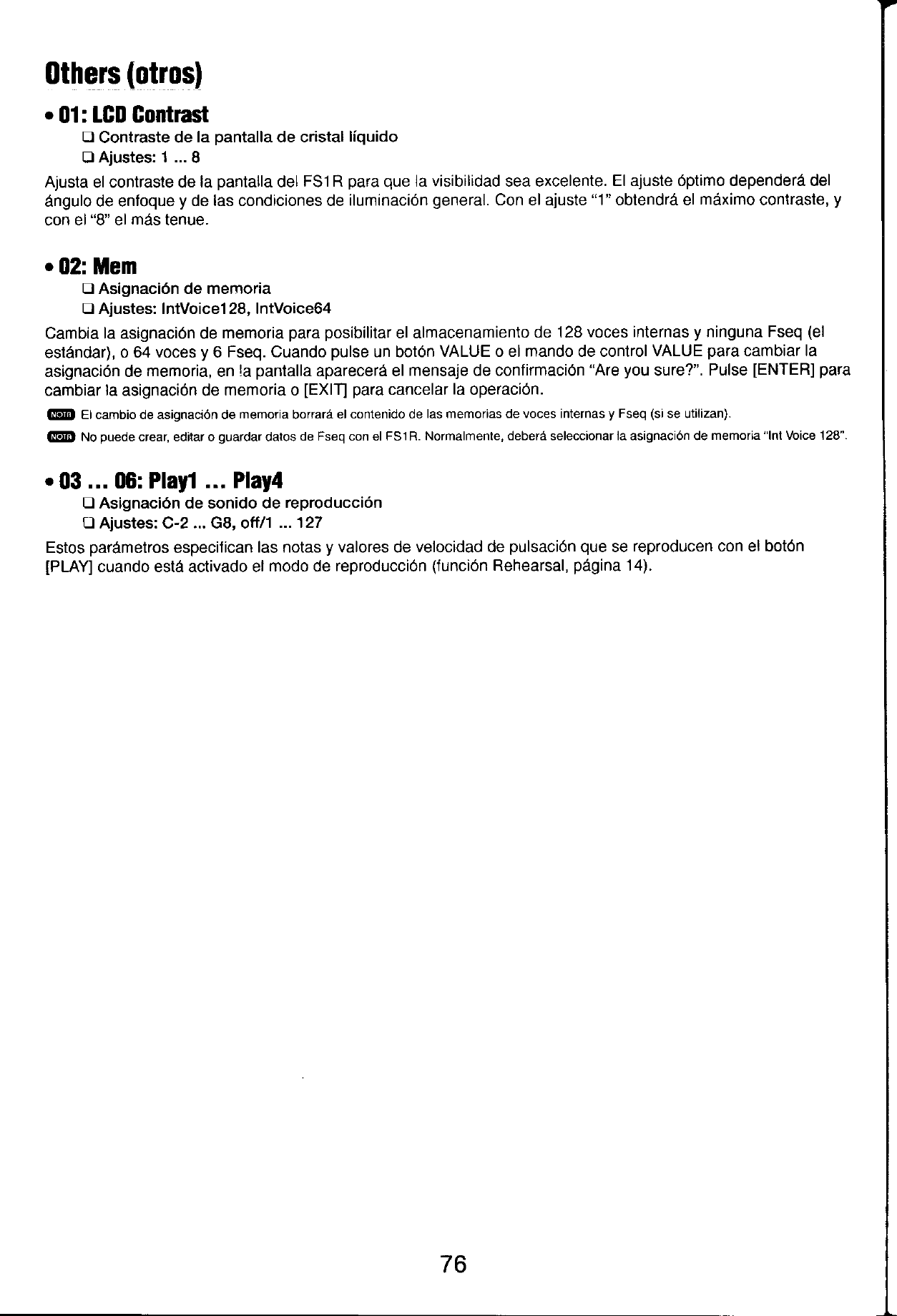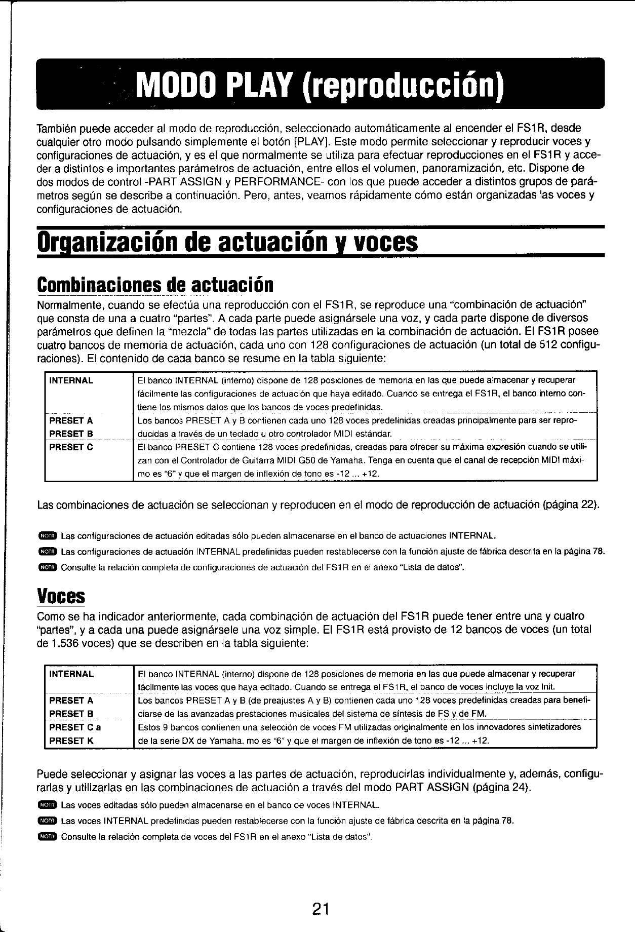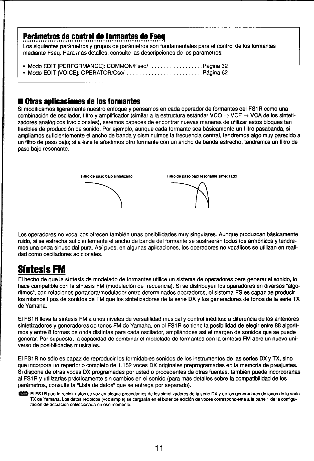 User Manual: Yamaha FS1R Owner's Manual