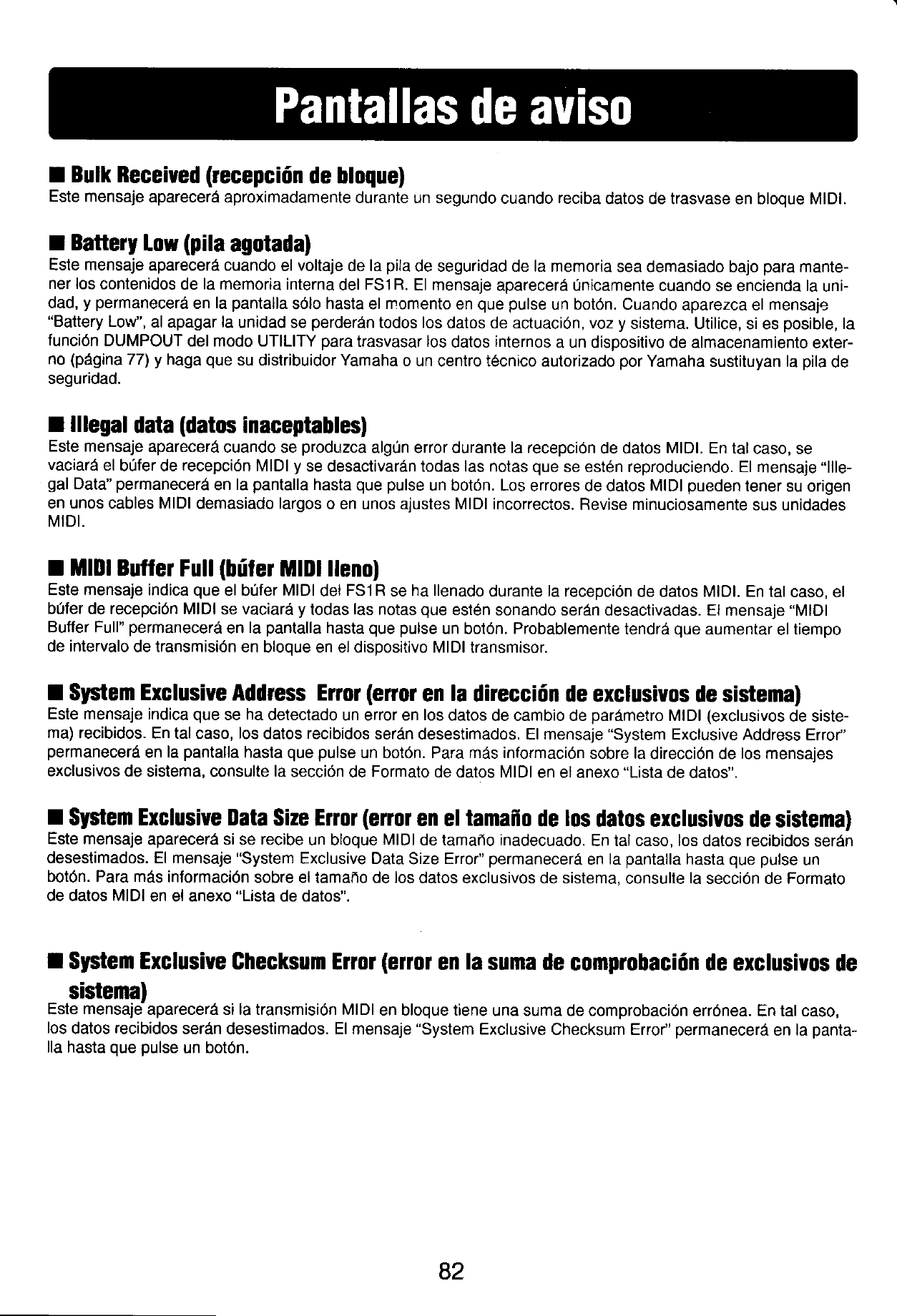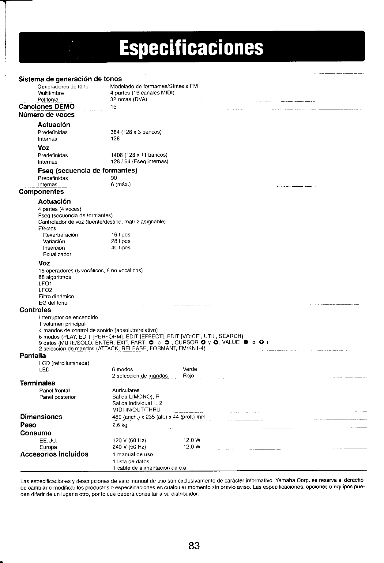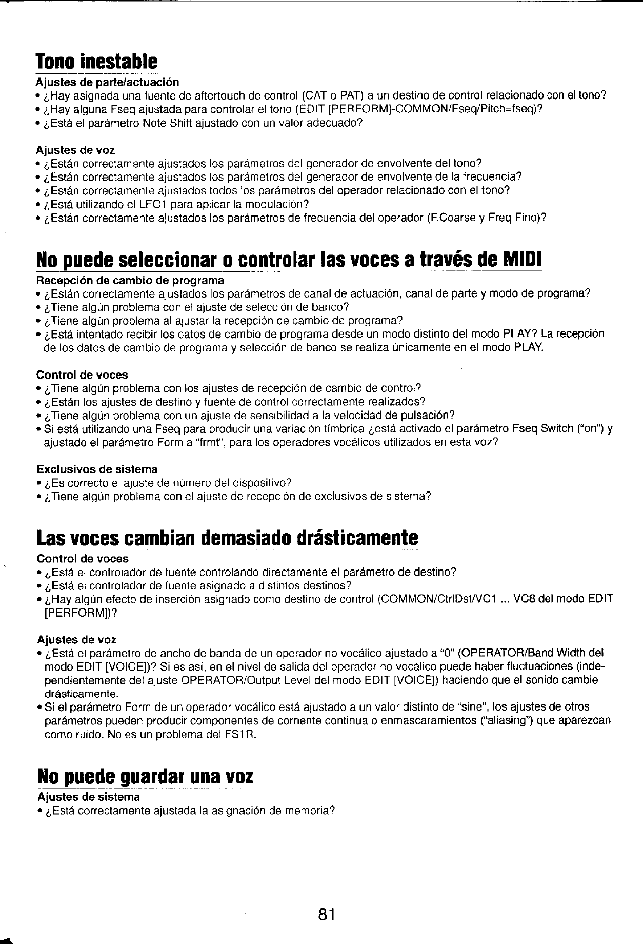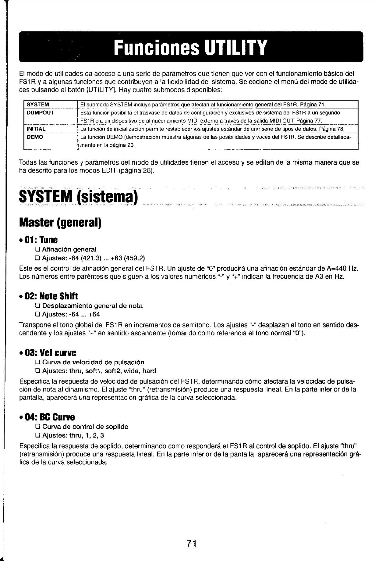 User Manual: Yamaha FS1R Owner's Manual