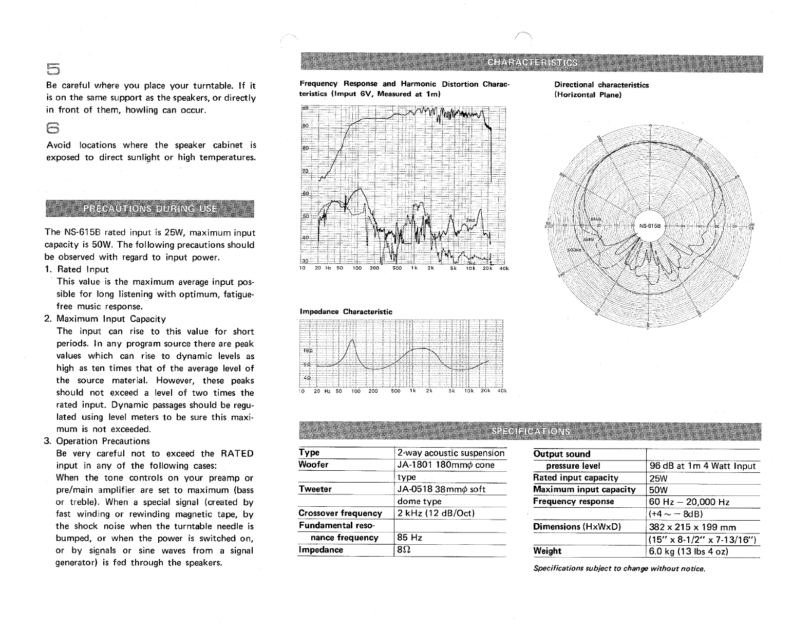User Manual: Yamaha NS-615 OWNER'S MANUAL