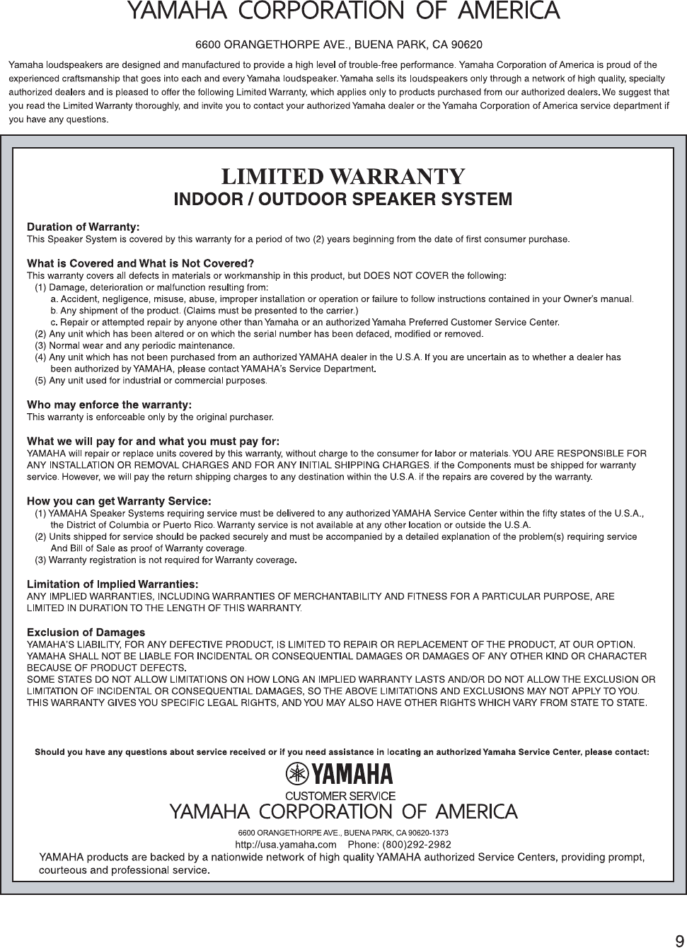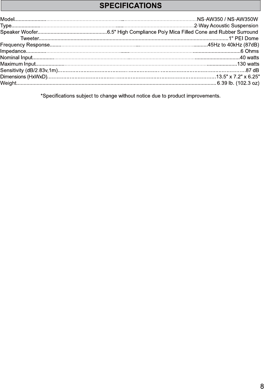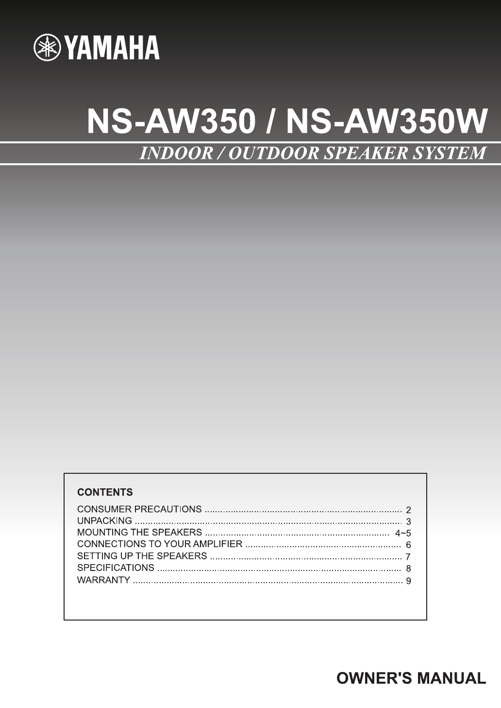 User Manual: Yamaha NS-AW350 Owner's Manual