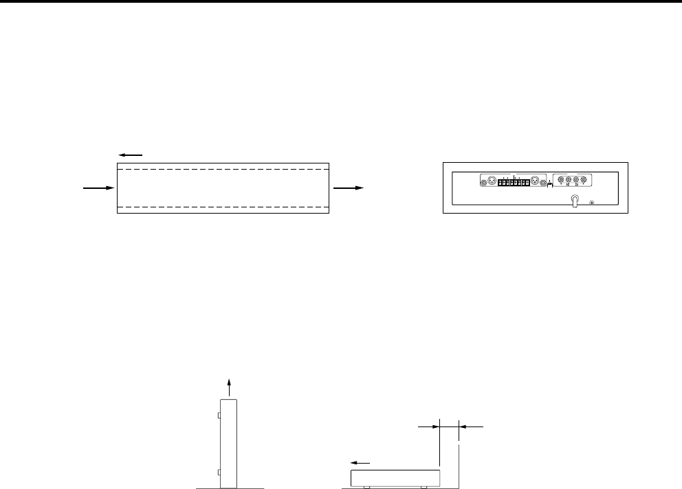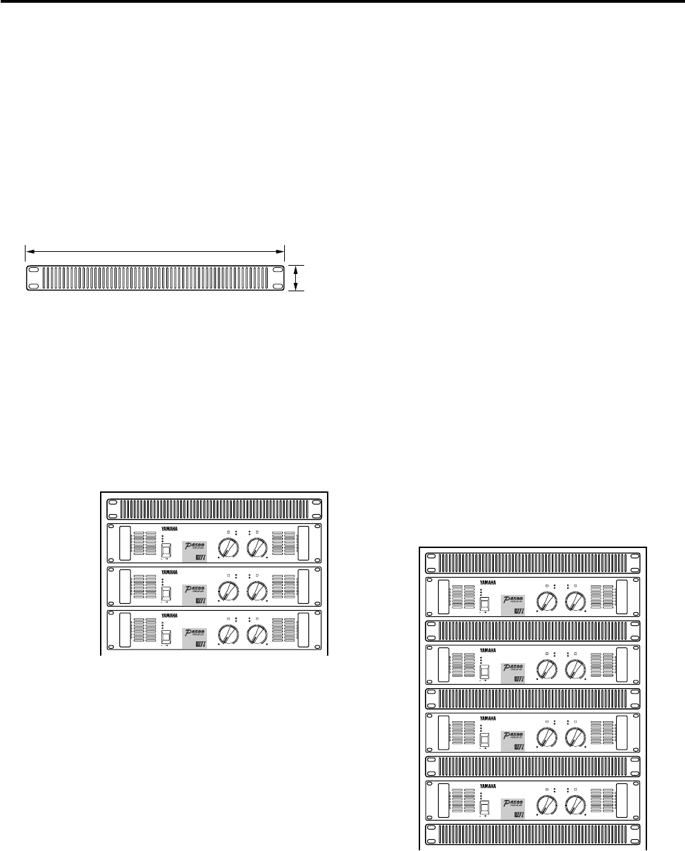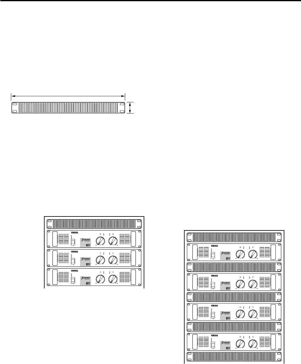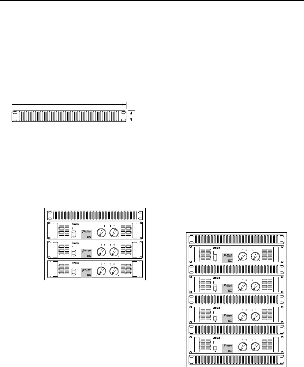 - Montaje de cinco o más amplificadores, o cuando (incluso con cuatro o menos unidades) la parte del bastidor no pueda dejarse