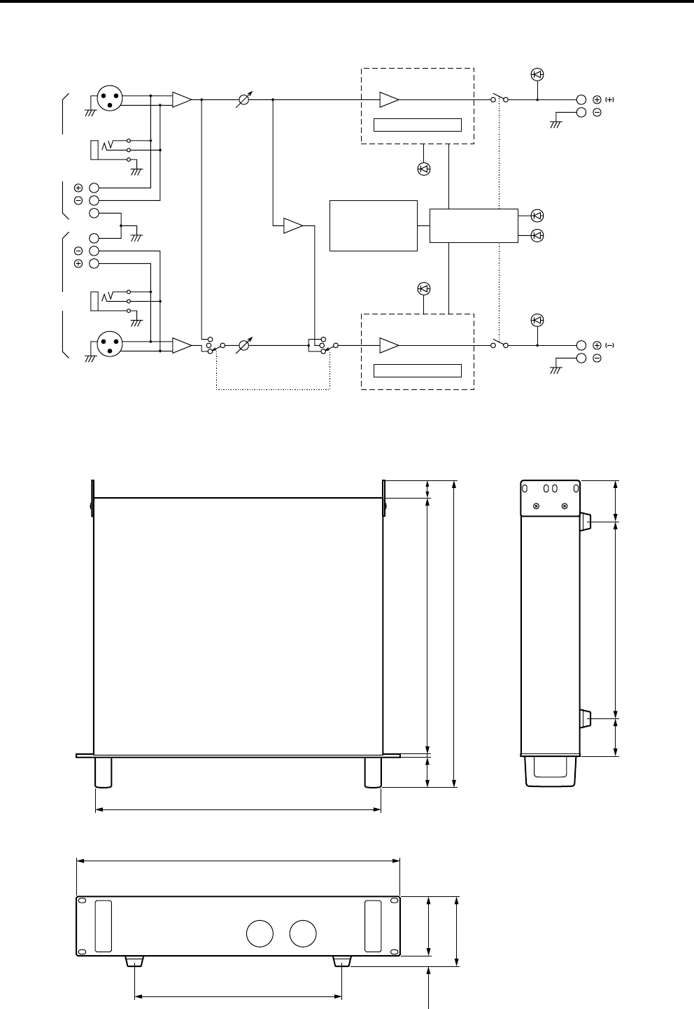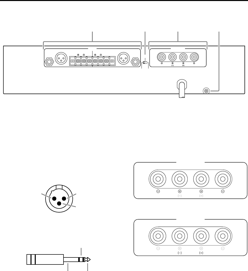 • Three types of input jack (balanced XLR type connectors, balanced phone jacks, and barrier