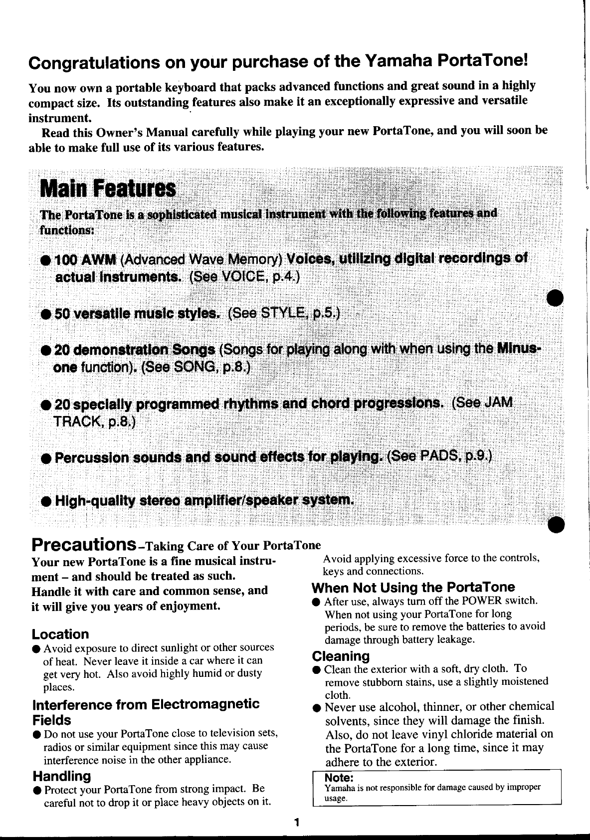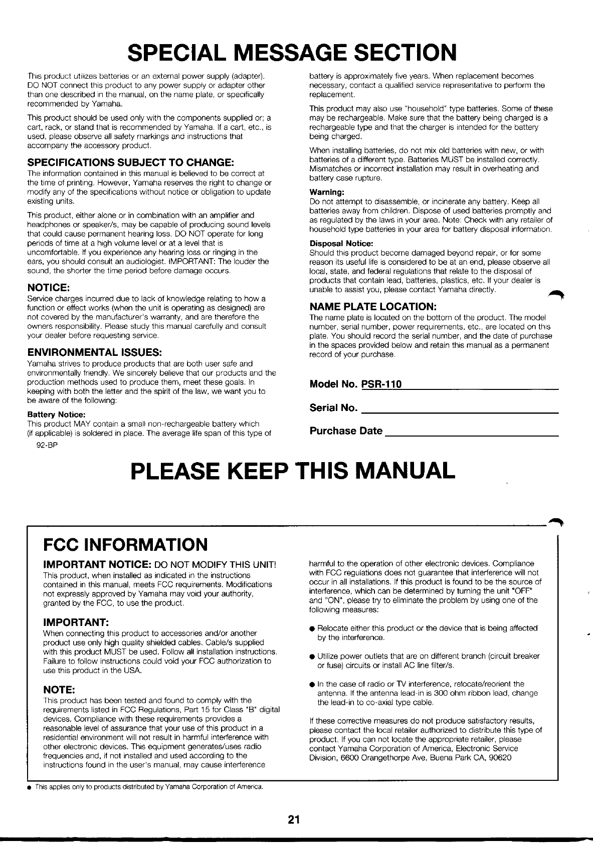 Yamaha Corporation PSR-110 Owner's Manual psr110e Yamaha Corporation - PSR-110 - Owner's Manual