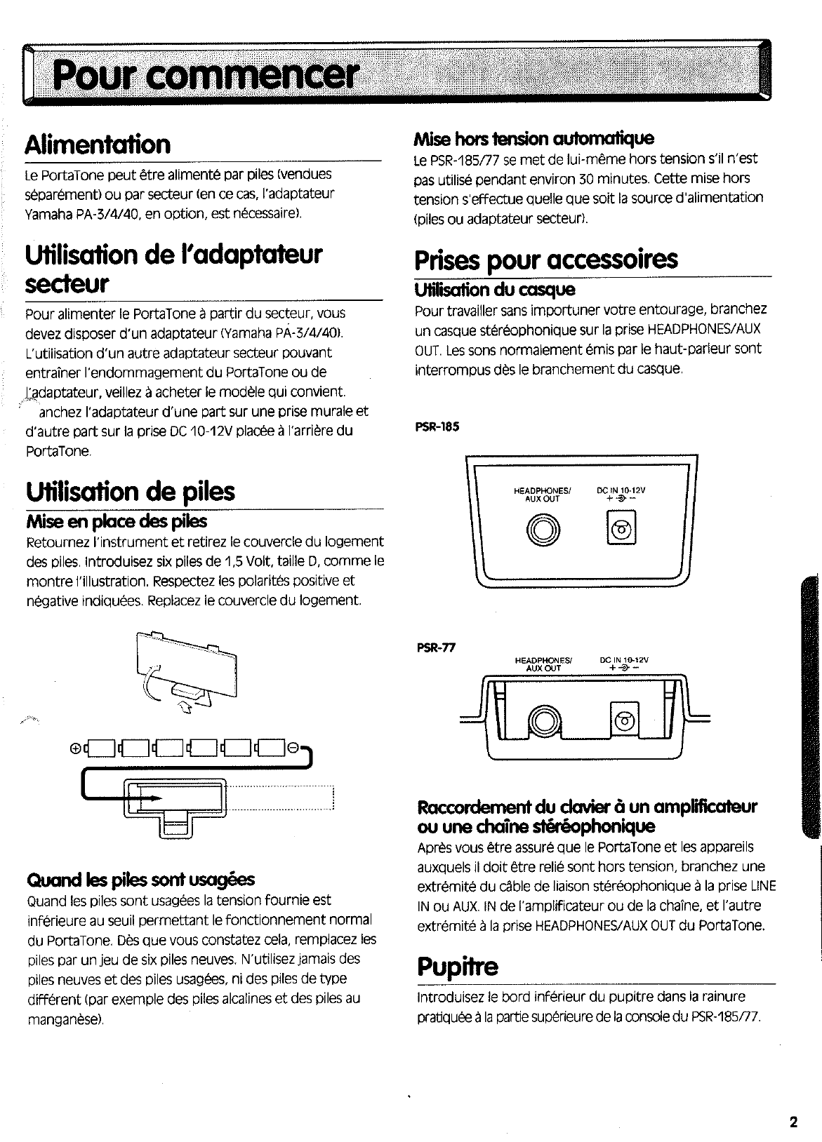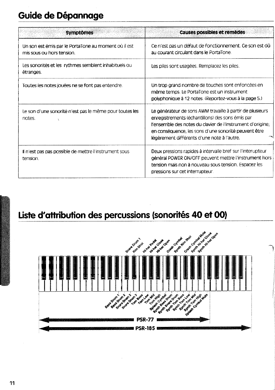 User Manual: Yamaha PSR-185/PSR-77 Owner's Manual
