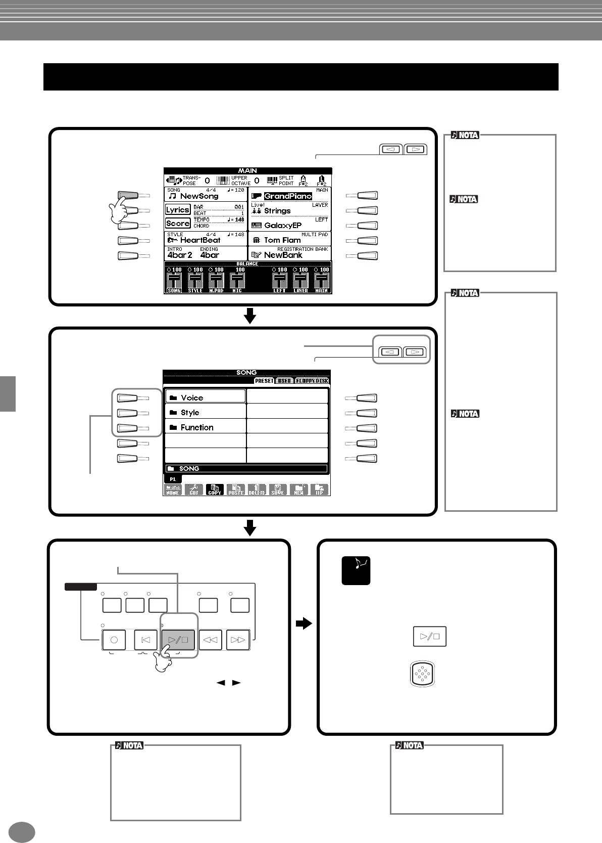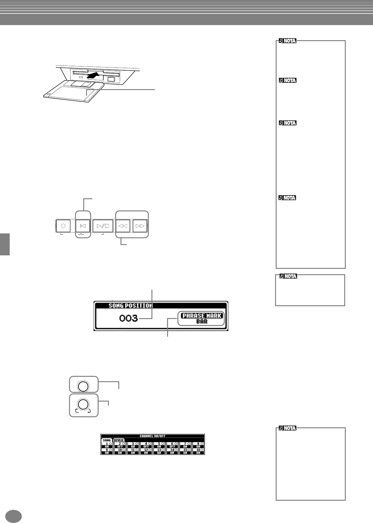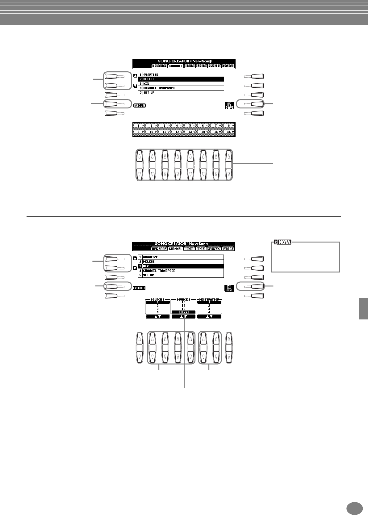 - Ajuste de parámetros relacionados con canciones: Song Settings (ajustes de canciones) (página137)