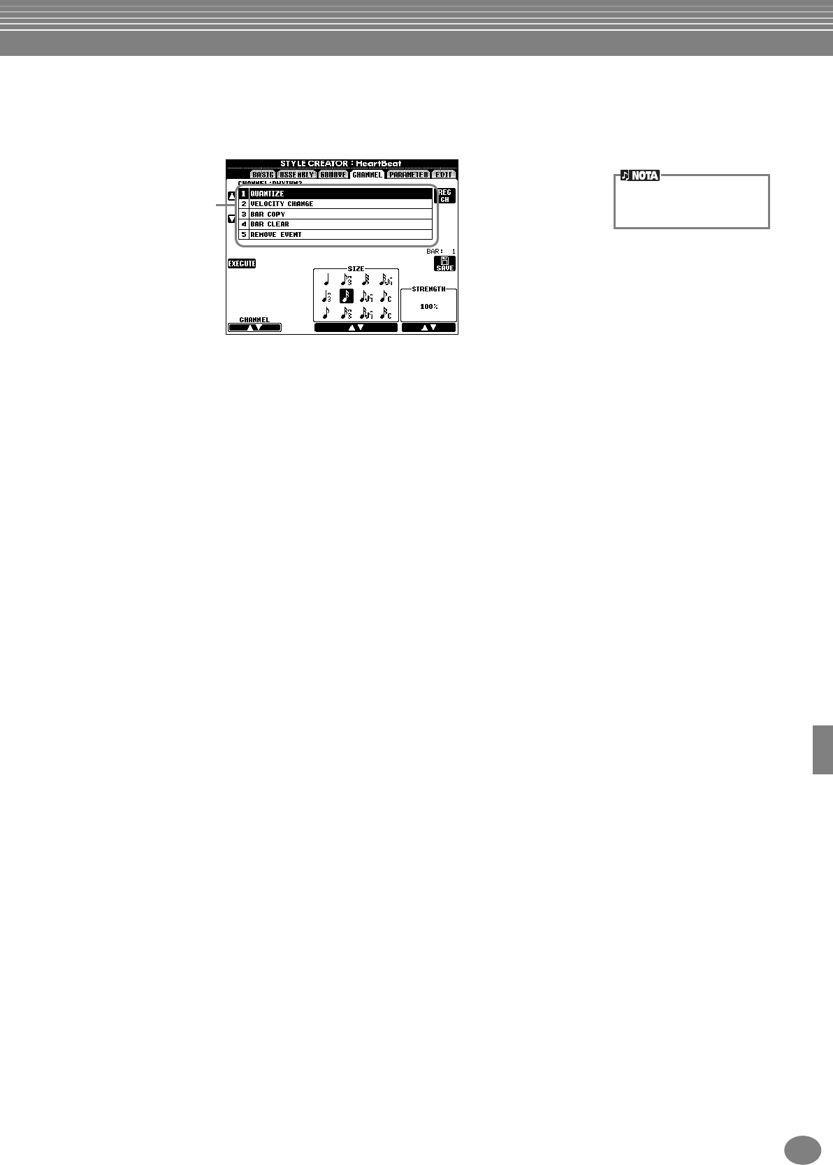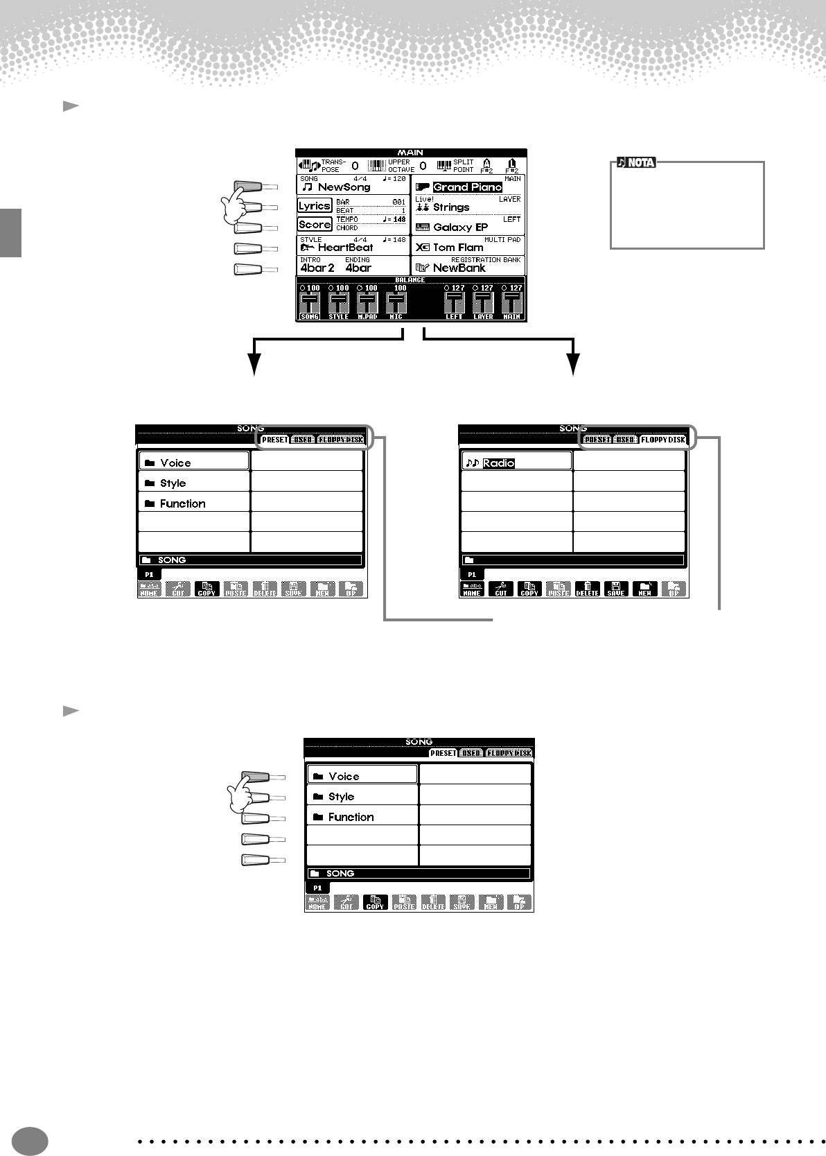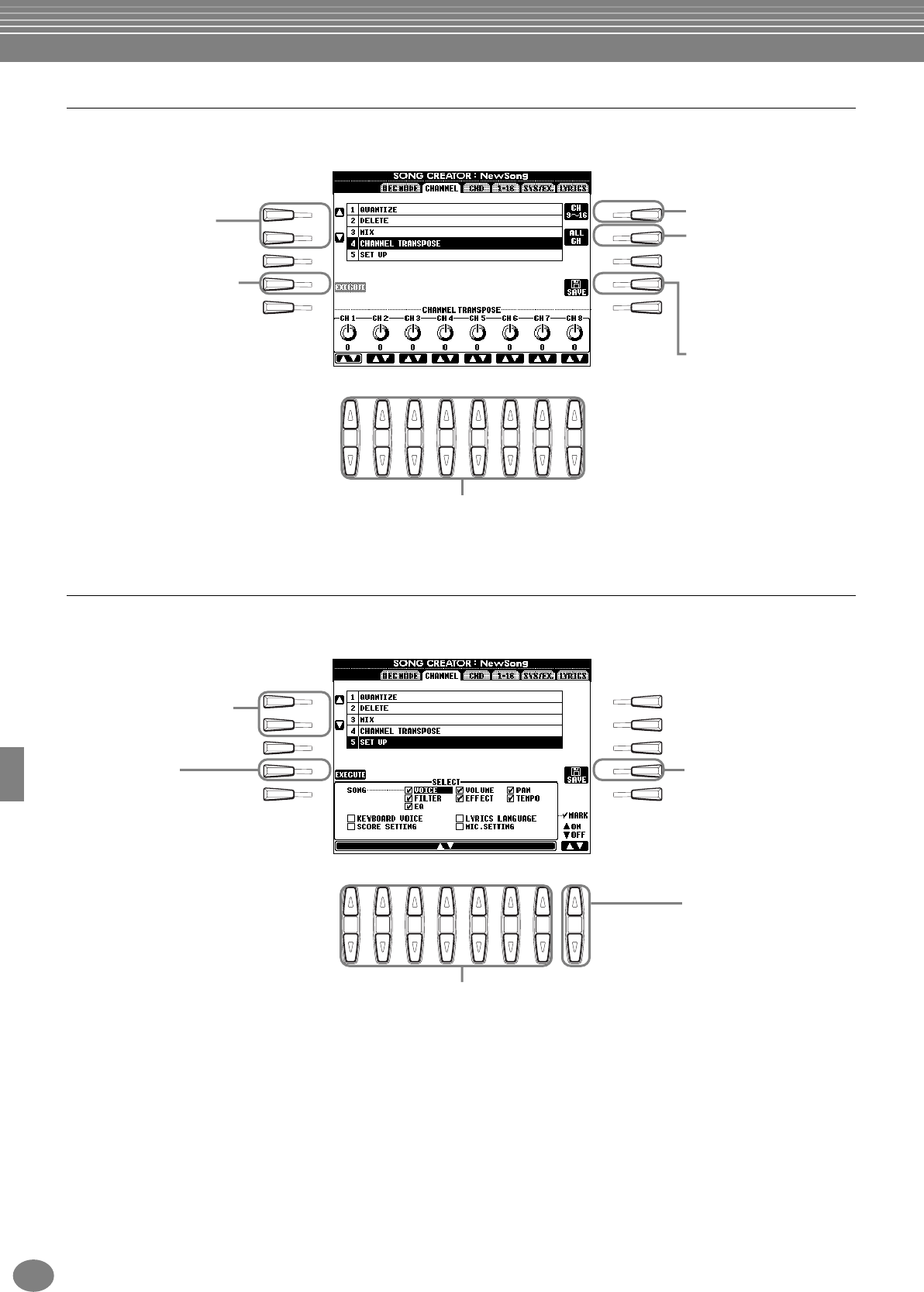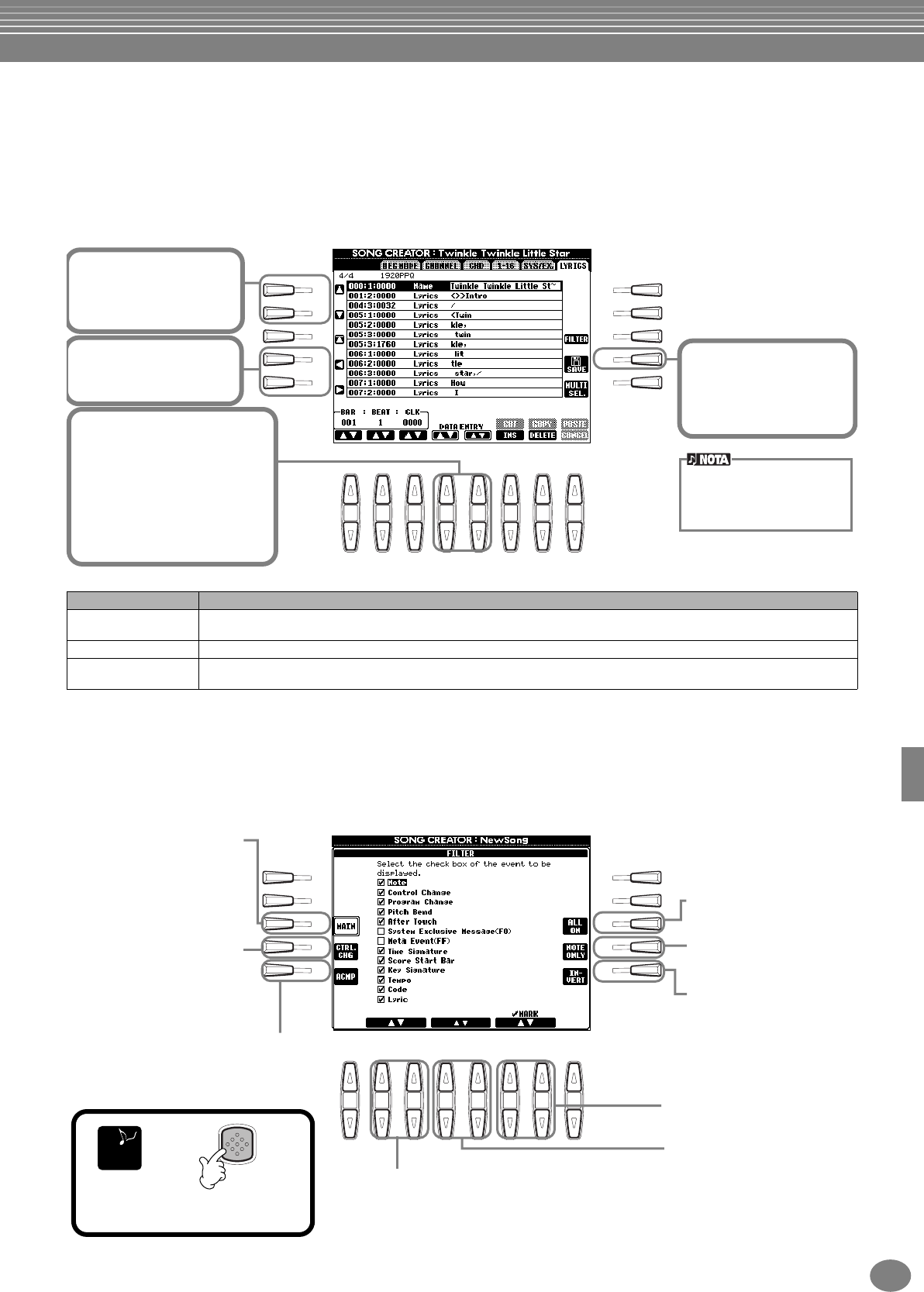 - Ajuste de parámetros relacionados con canciones: Song Settings (ajustes de canciones) (página137)