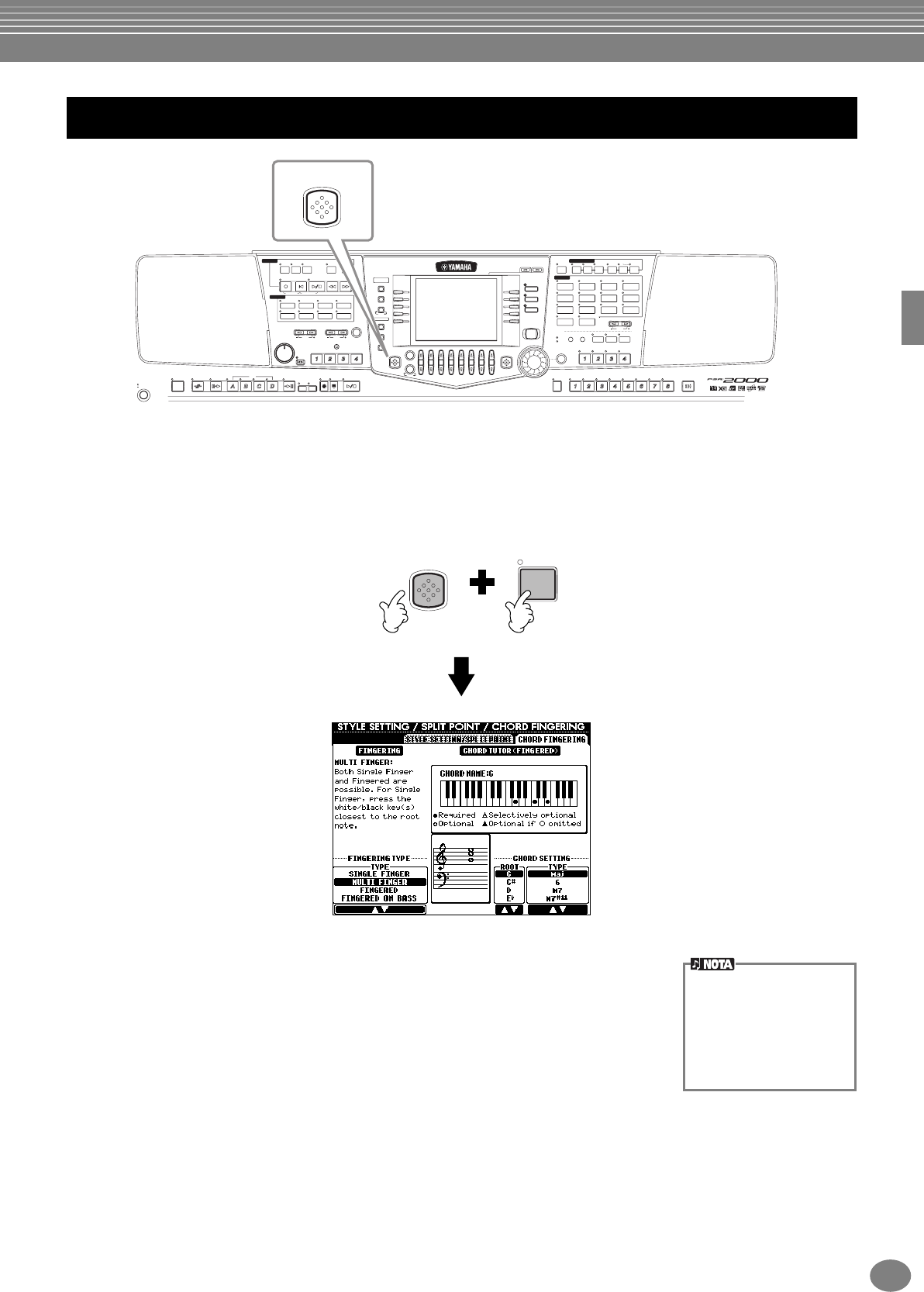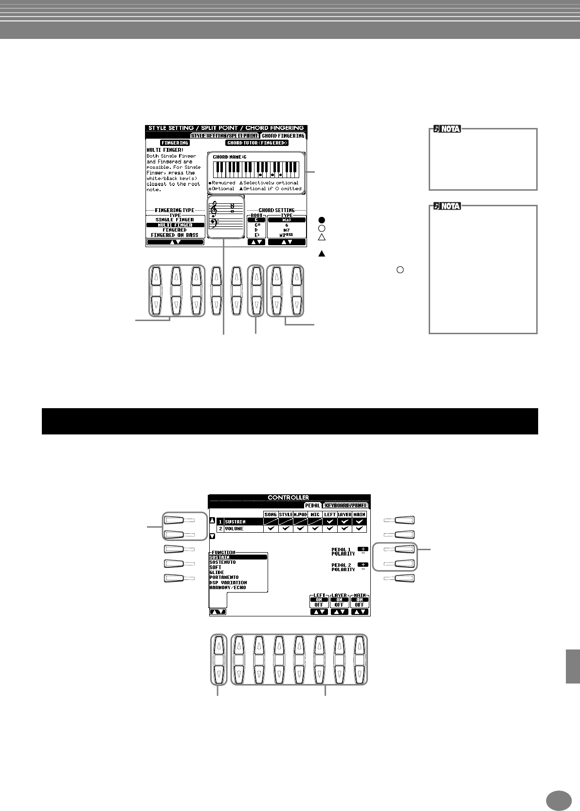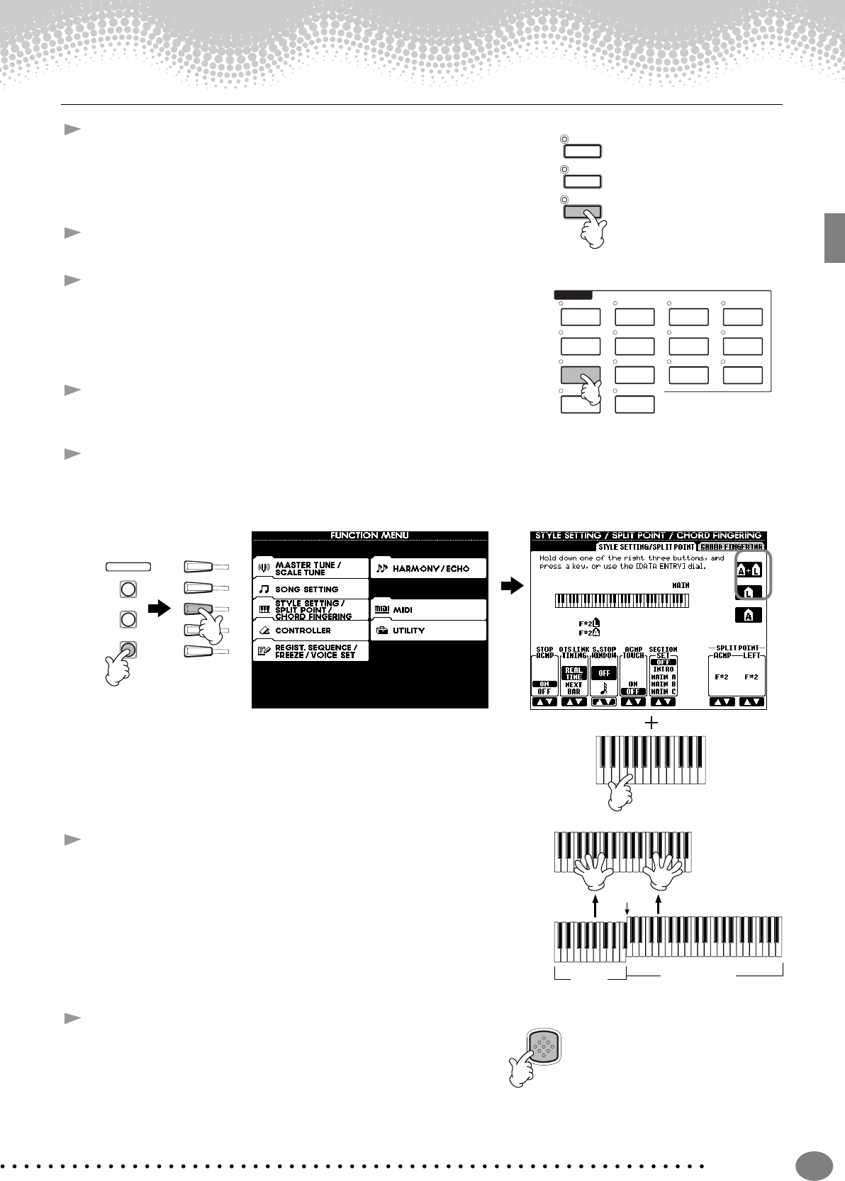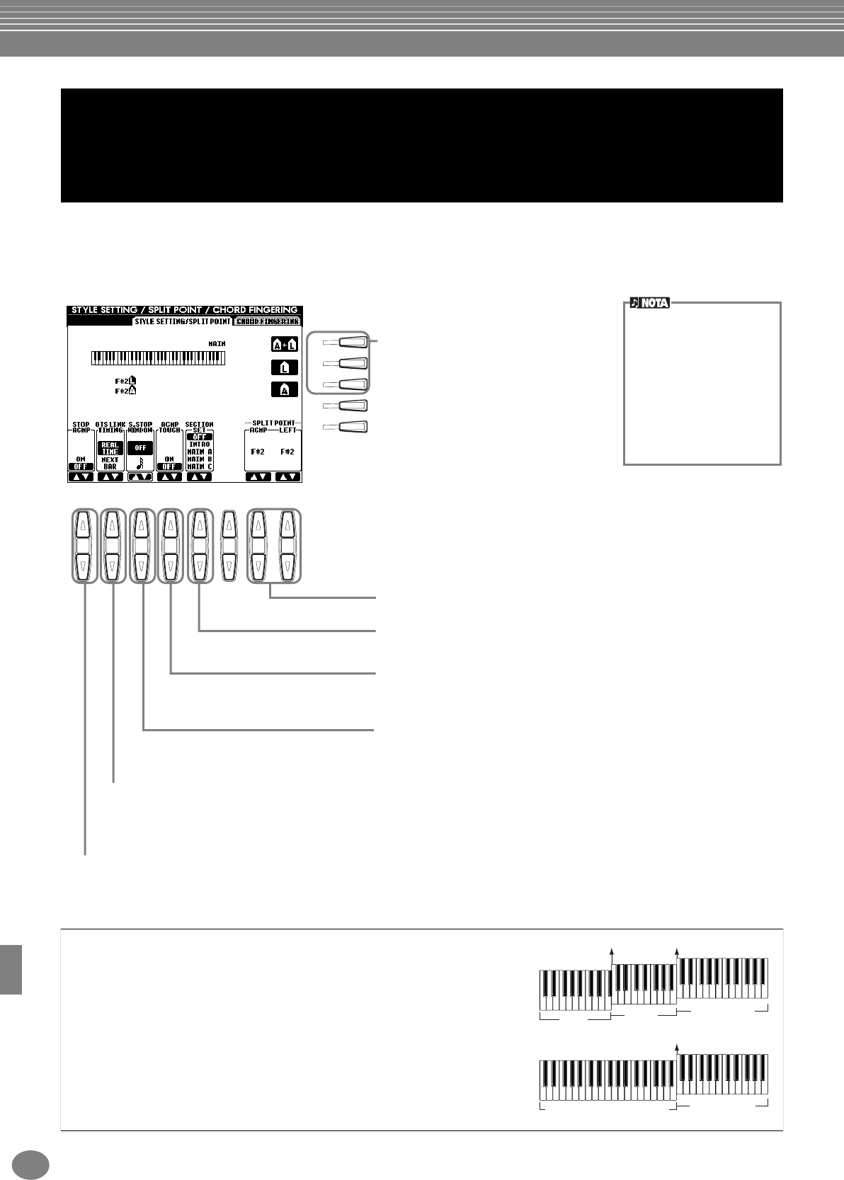 - Ajuste de parámetros relacionados con el acompañamiento automático: Style Setting, Split Point y ...