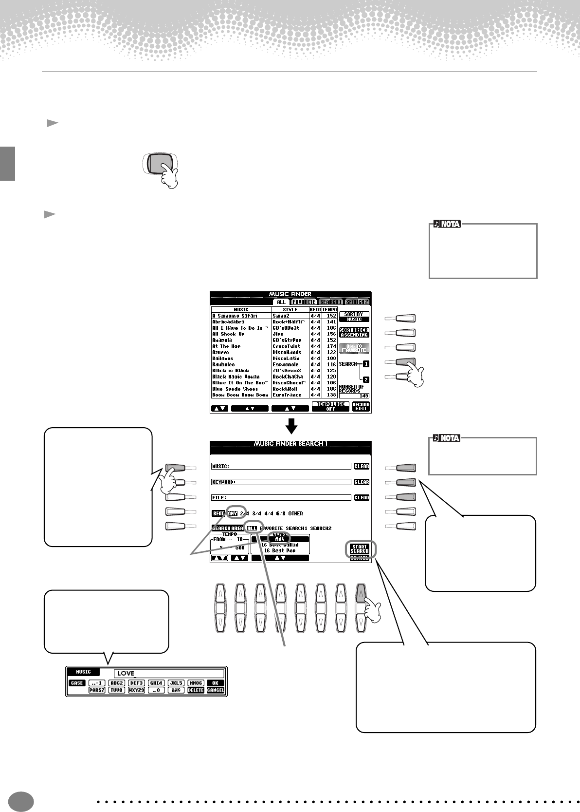 - Acceso a los ajustes idóneos para la música que interpreta: Music Finder