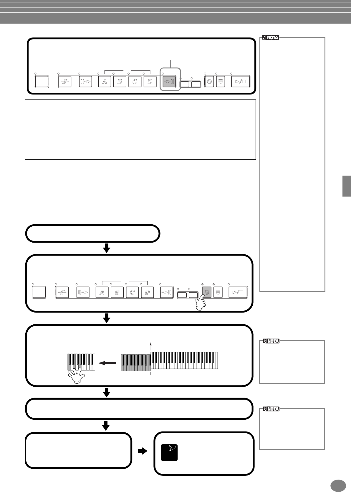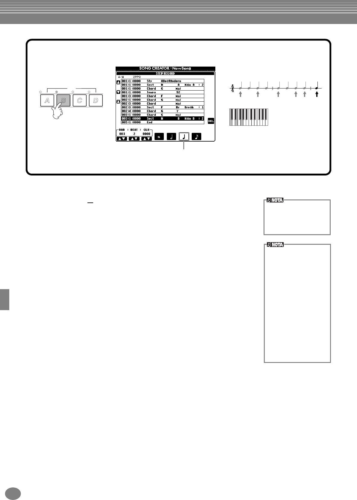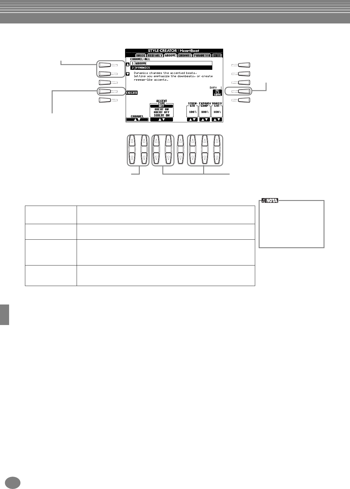 - Disposición del patrón de estilo (SECCIONES: MAIN (principal) A/B/C/D, INTRO (preludio), ENDING (...