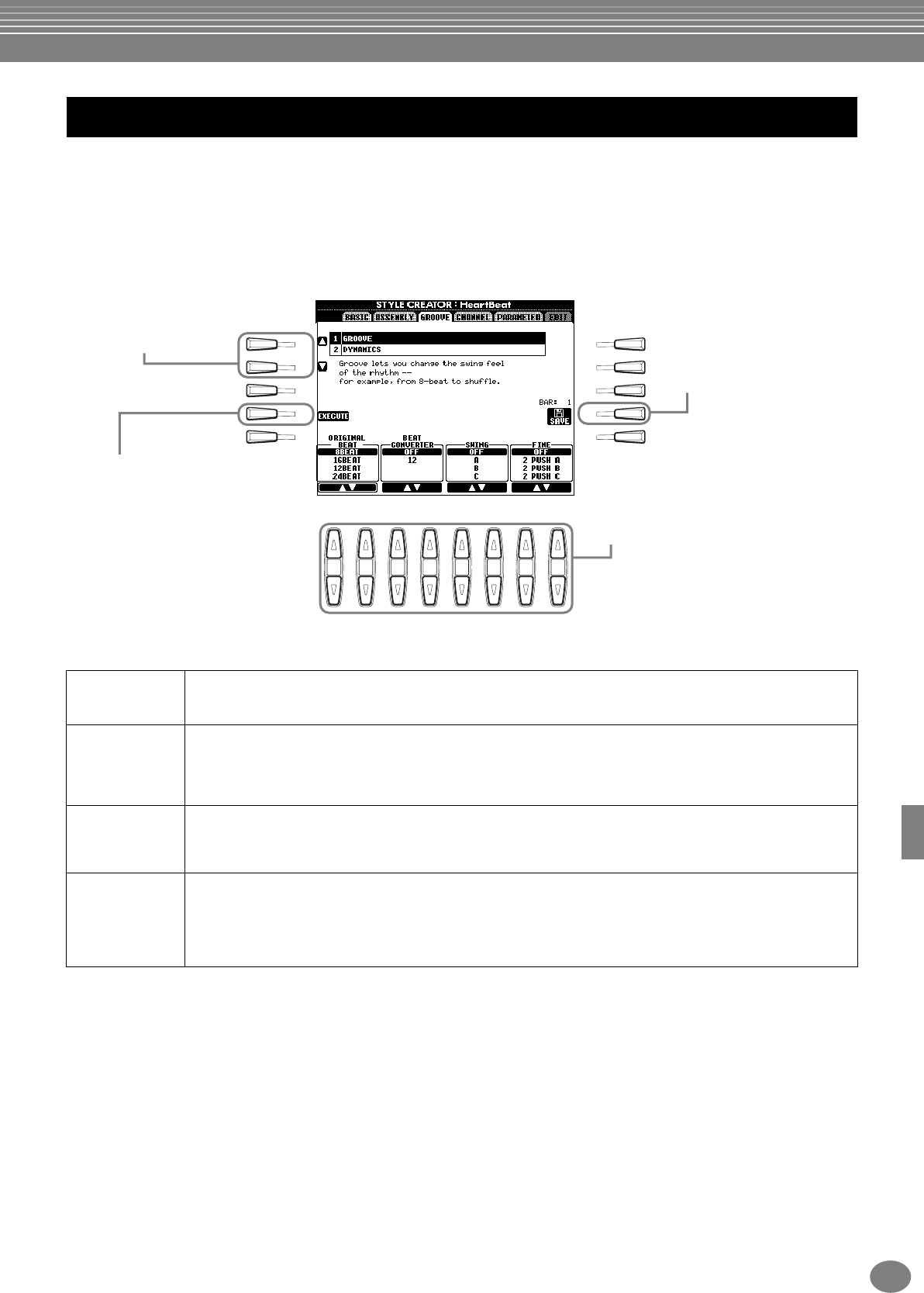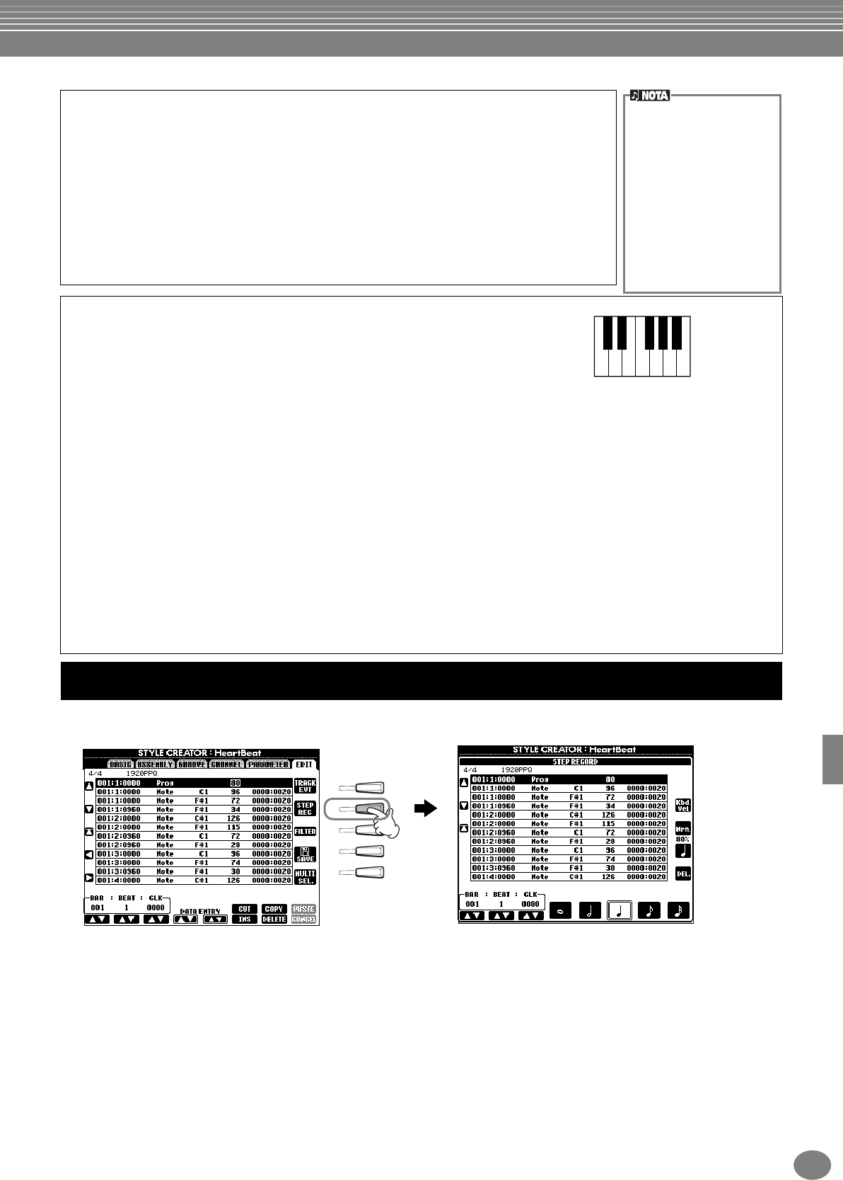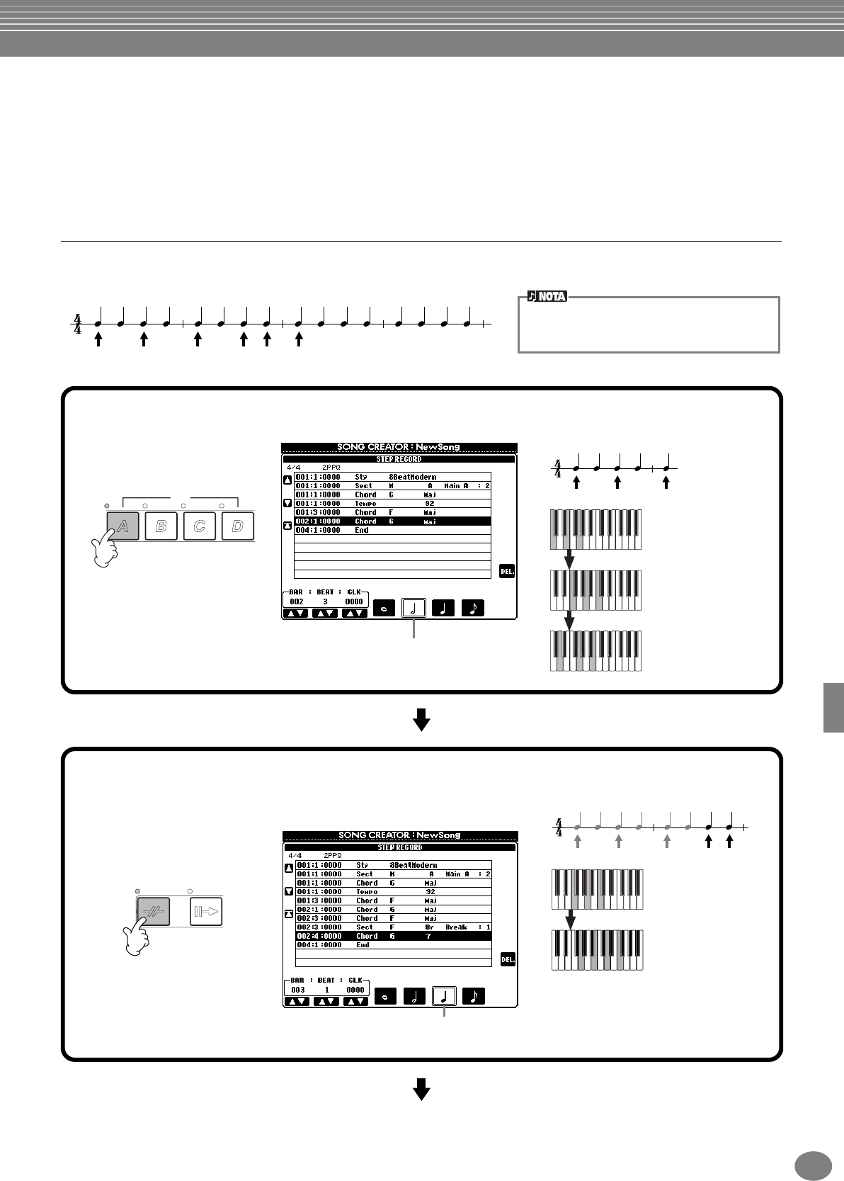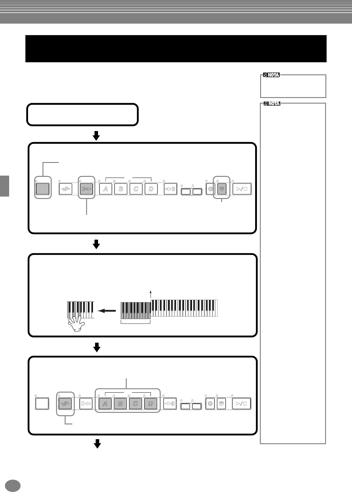 - Disposición del patrón de estilo (SECCIONES: MAIN (principal) A/B/C/D, INTRO (preludio), ENDING (...