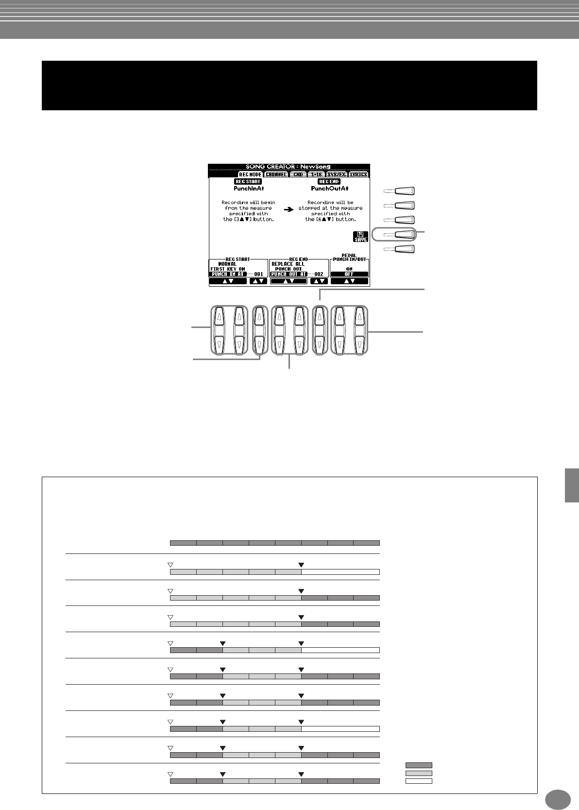 - Selección de las opciones de grabación: inicio, interrupción, entrada y salida de inserción; Rec ...