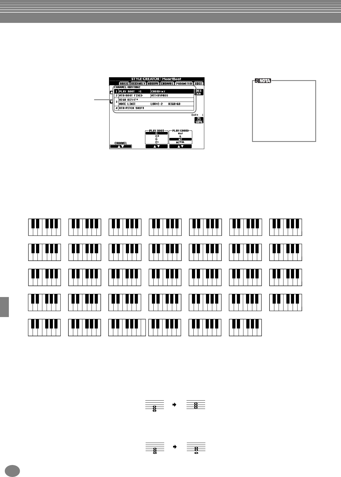 - Ajuste de los canales de notas fundamentales: Root (nota fundamental)