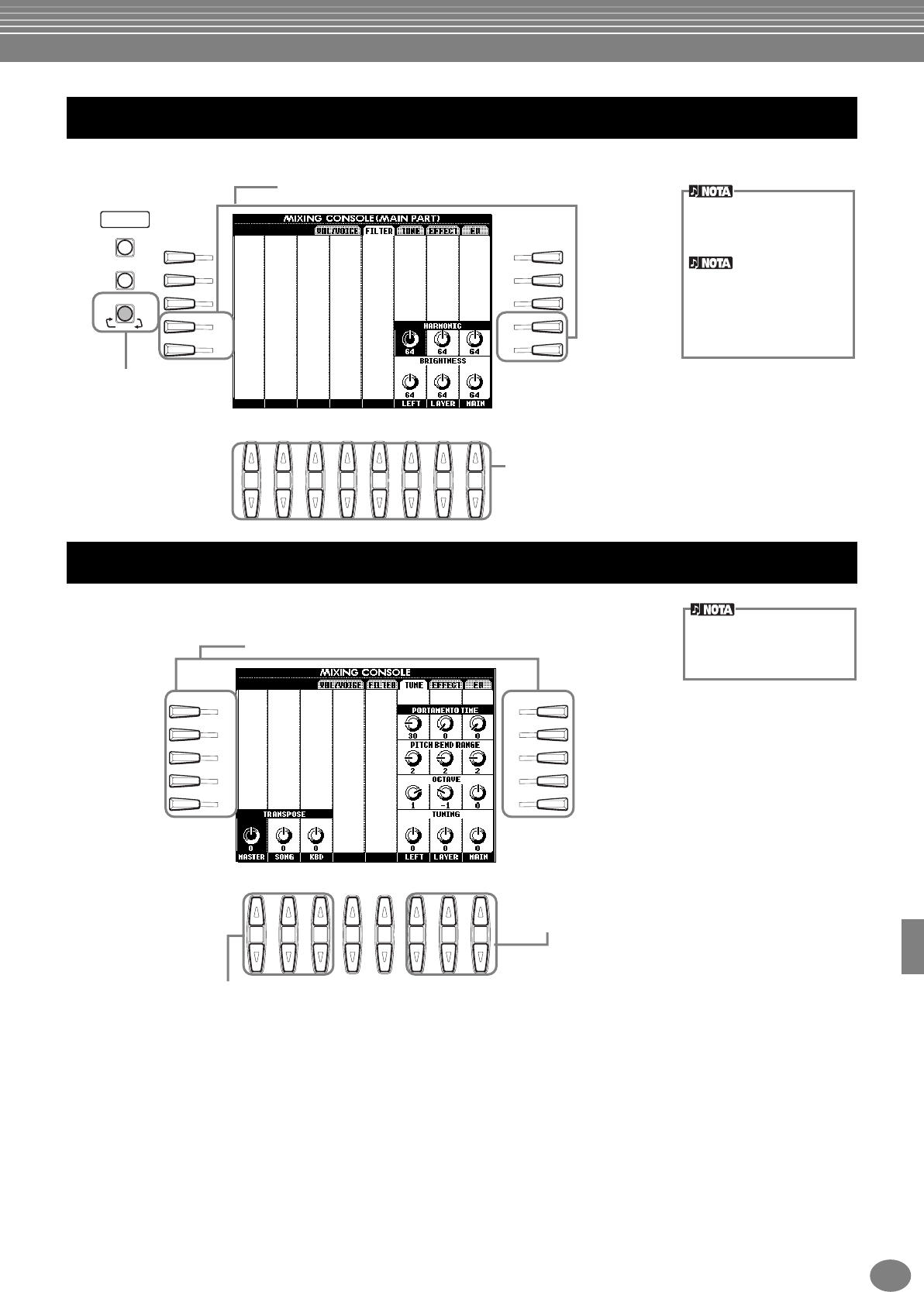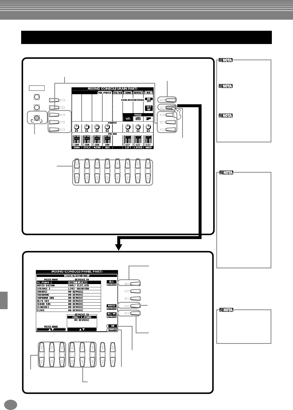 - Ajuste del balance de volumen y del cambio de voces: Mixing Console (consola de mezclas)