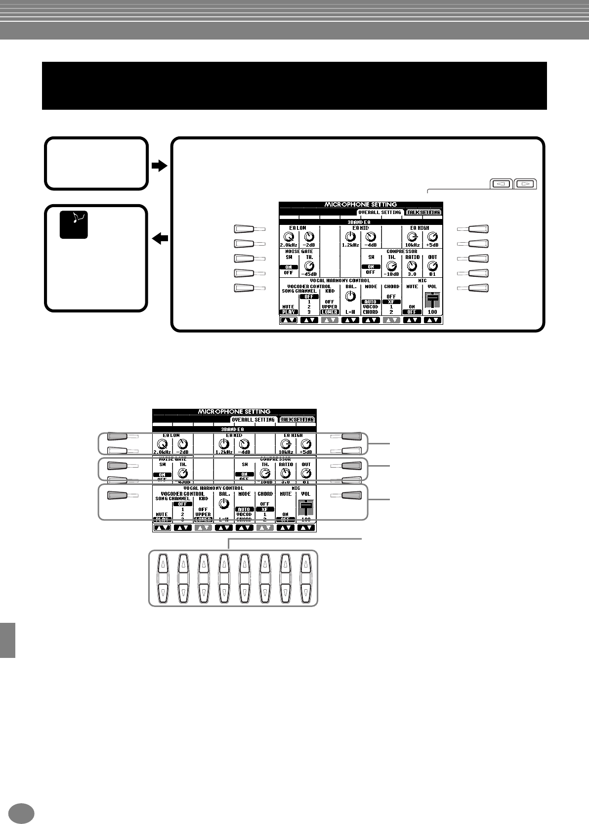 - Realización de ajustes para la armonía vocal y el micrófono: MICROPHONE SETTING